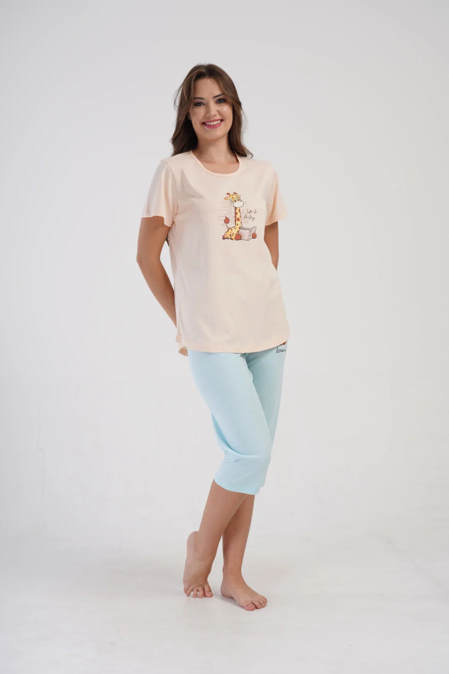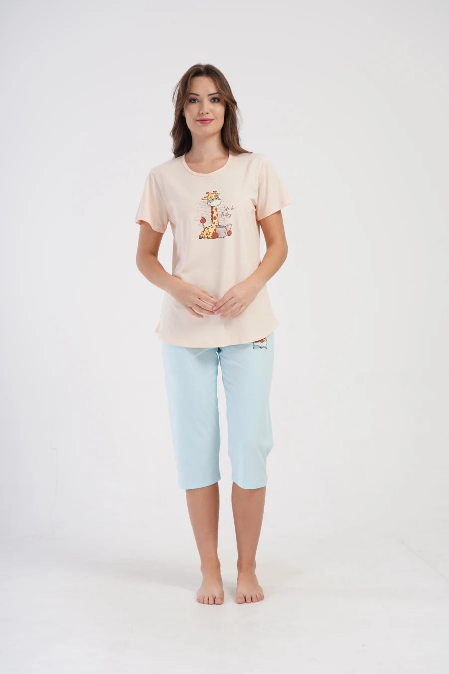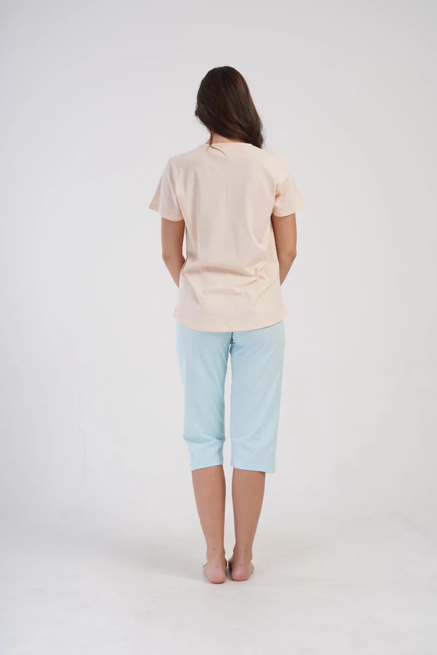 Piżama nocna, z krótkim rękawem i spodniami za kolano