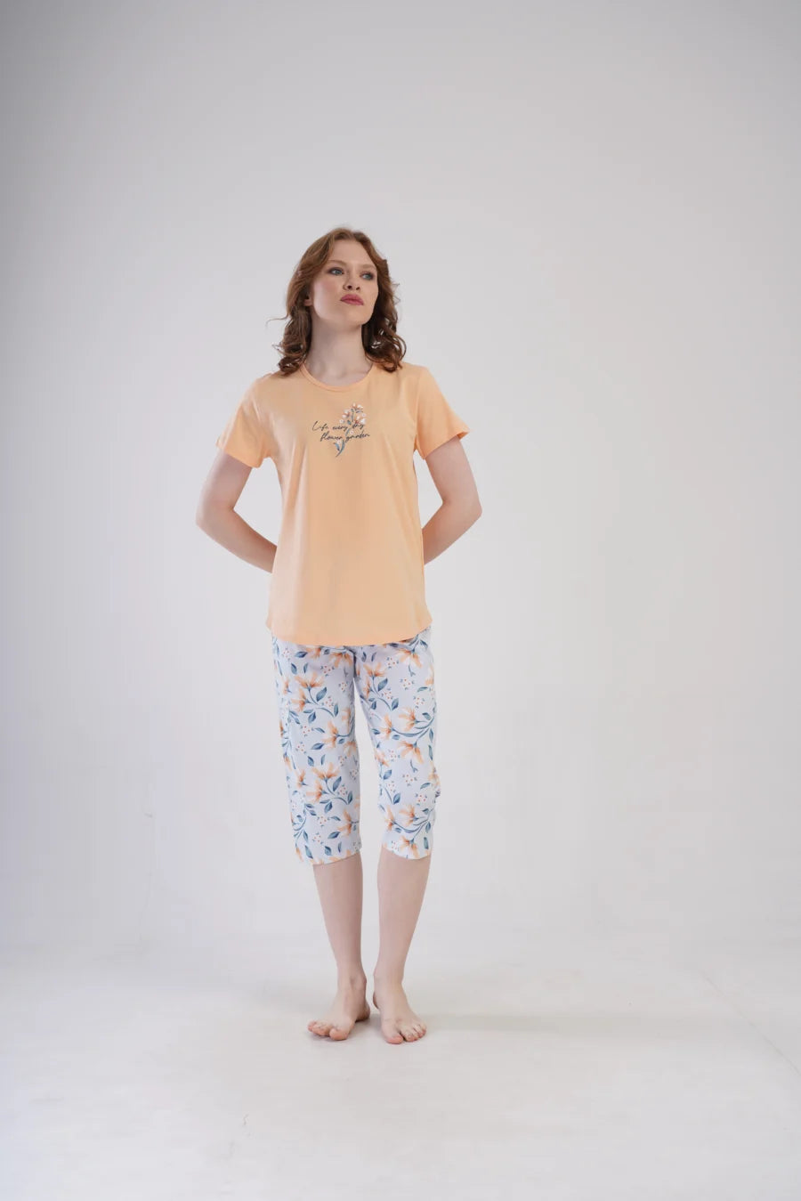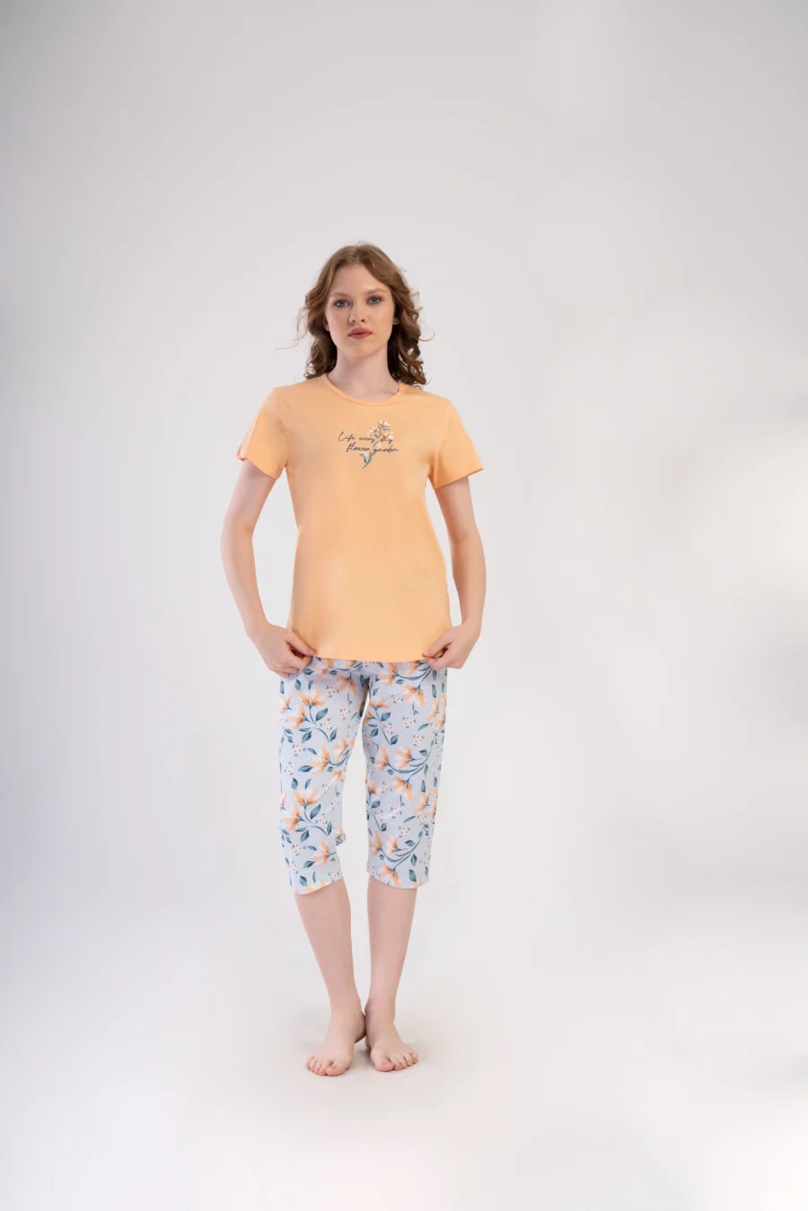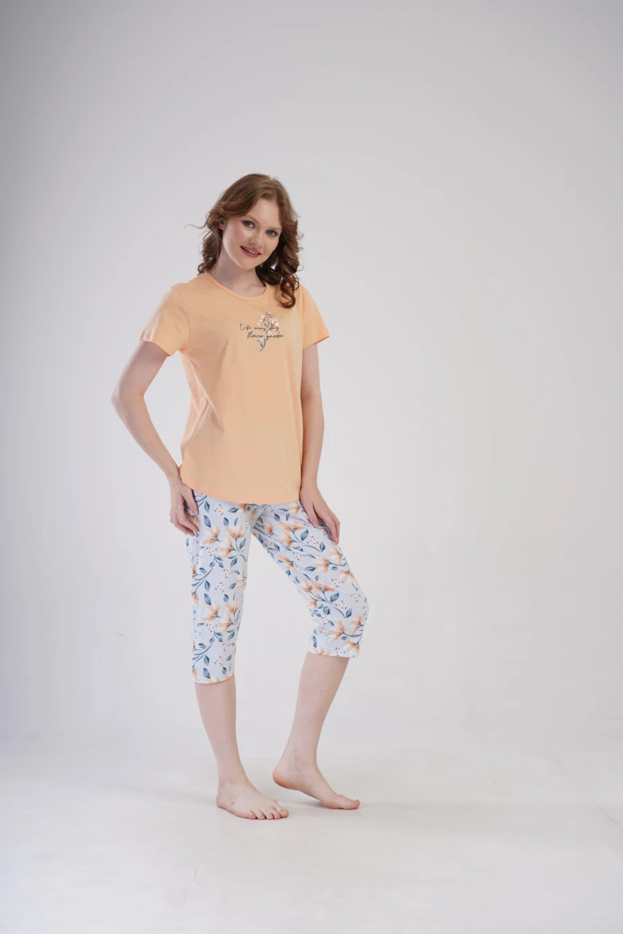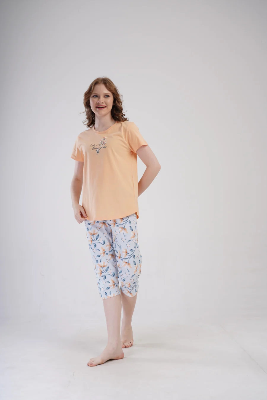 Piżama nocna, z krótkim rękawem i spodniami za kolano