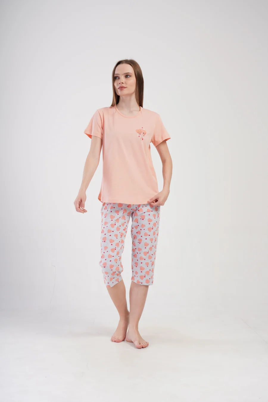 Piżama nocna, z krótkim rękawem i spodniami za kolano