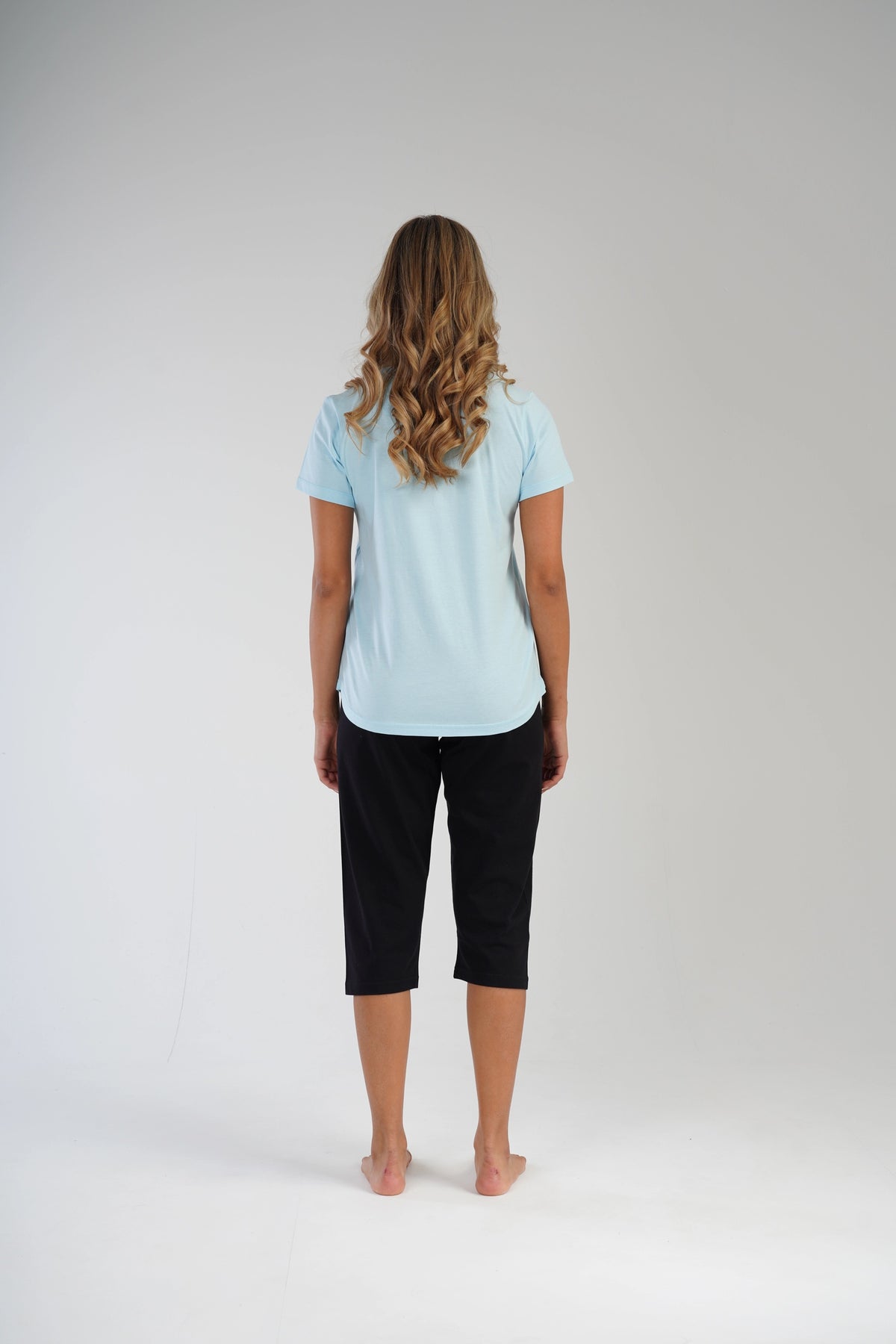 KOLOR: Bluzka: Błękitna, Spodnie: CzarneSKŁAD MATERIAŁU: 100% Bawełna