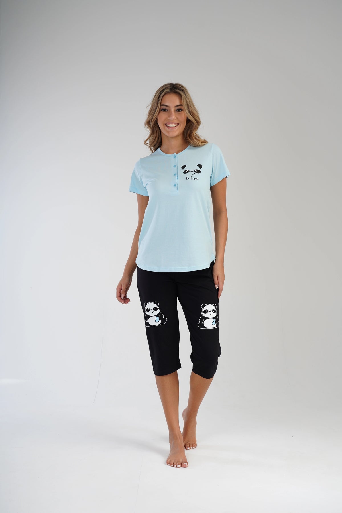 Piżama nocna, z krótkim rękawem i spodniami za kolano