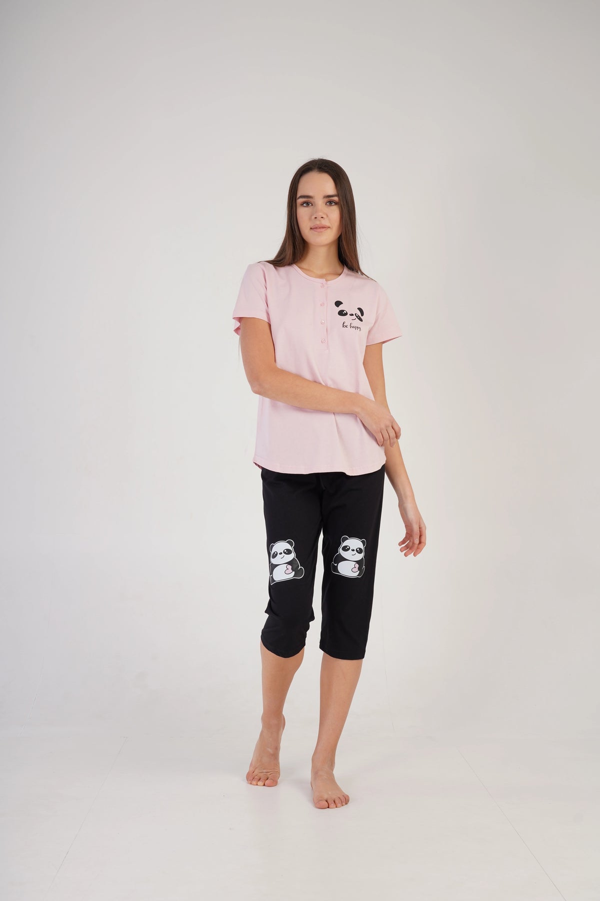 Piżama nocna, z krótkim rękawem i spodniami za kolano