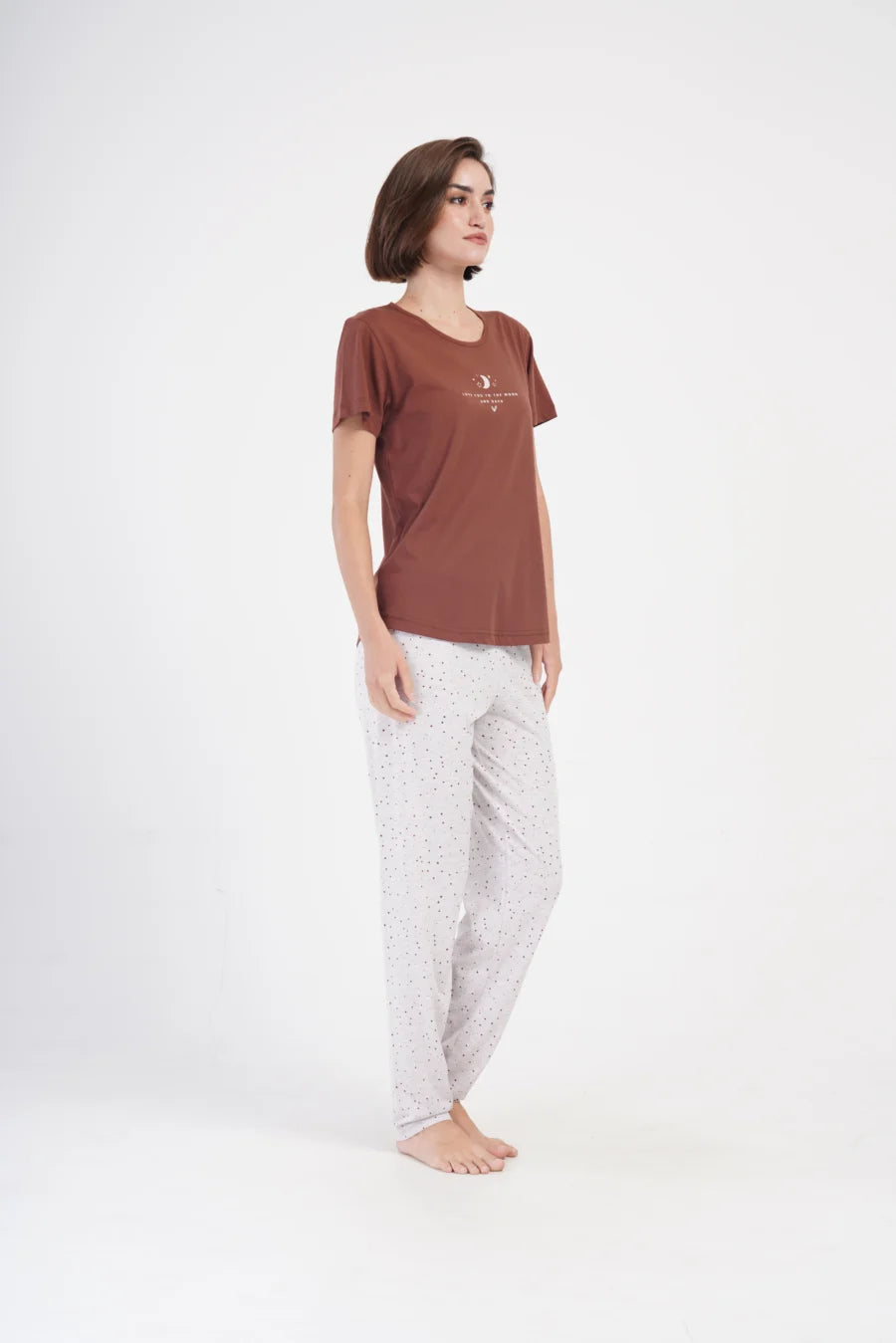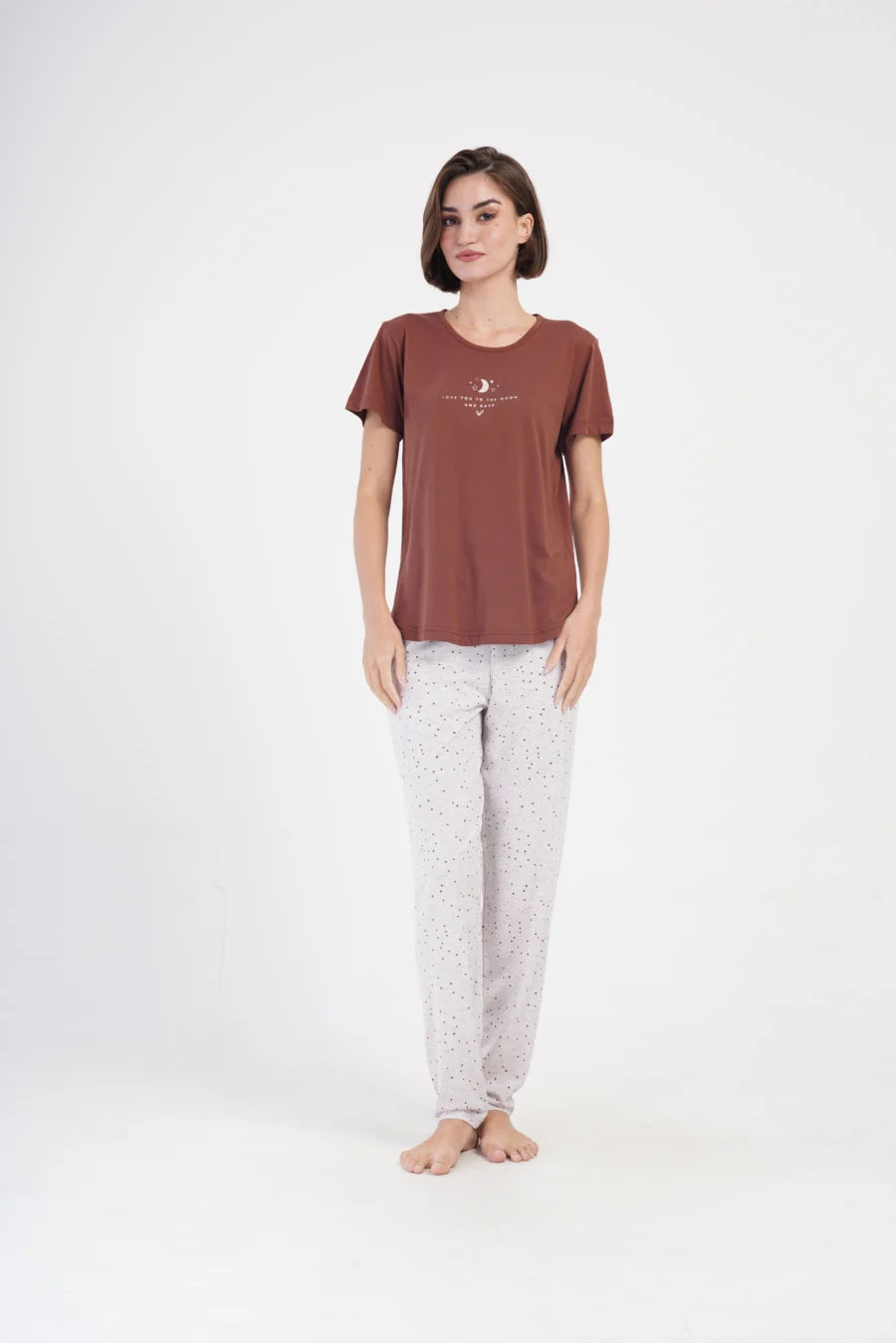 Piżama Damska Vienetta Moon, Brązowy, r. S-XL