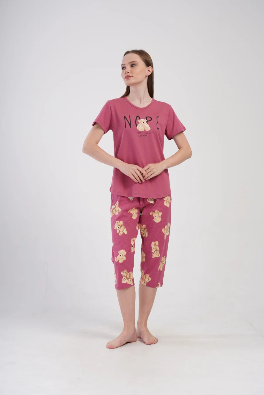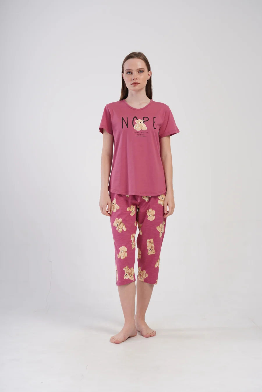 Piżama nocna, z krótkim rękawem i spodniami za kolano