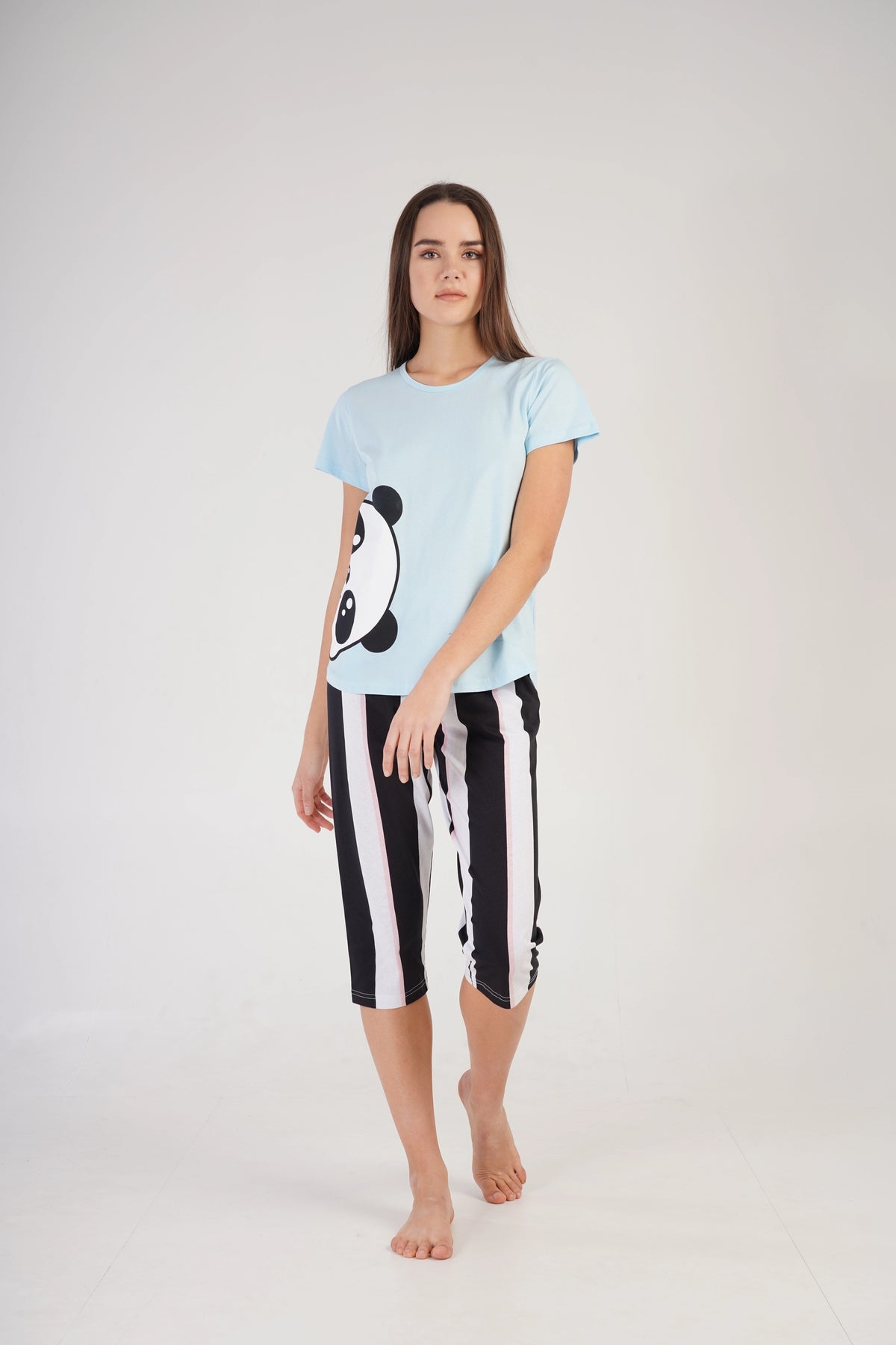 KOLOR: Bluzka: Niebieska, Spodnie: Czarno-białeSKŁAD MATERIAŁU: 100% Bawełna PRODUCENT: Vienetta (2111390351) SZUKASZ INNEGO ROZMIARU LUB WZORU? SPRAWDŹ POZOSTAŁE NASZE AUKCJE! Piżama nocna, z krótkim rękawem i spodniami za kolano spodnie mają w pasie gumkę i sznurek ułatwiający regulacje Jest przyjemna i miła w dotyku Bardzo wygodna i komfortowa w użytkowaniu. Wykonana z wysokiej jakości materiału. Modny, nowoczesny krój zadowoli najbardziej wymagających. Idealnie nada się na prezent dla bliskiej Ci osoby. Piżama polecana dla kobiet i dziewcząt . Idealnie dopasowuje się do sylwetki dzięki wygodnemu krojowi. Materiał z którego została wykonana jest delikatny i nie podrażnia skóry. Jej uniwersalny i elegancki wzór przypadnie do gustu każdej kobiecie. Bardzo wygodna i komfortowa w użytkowaniu.