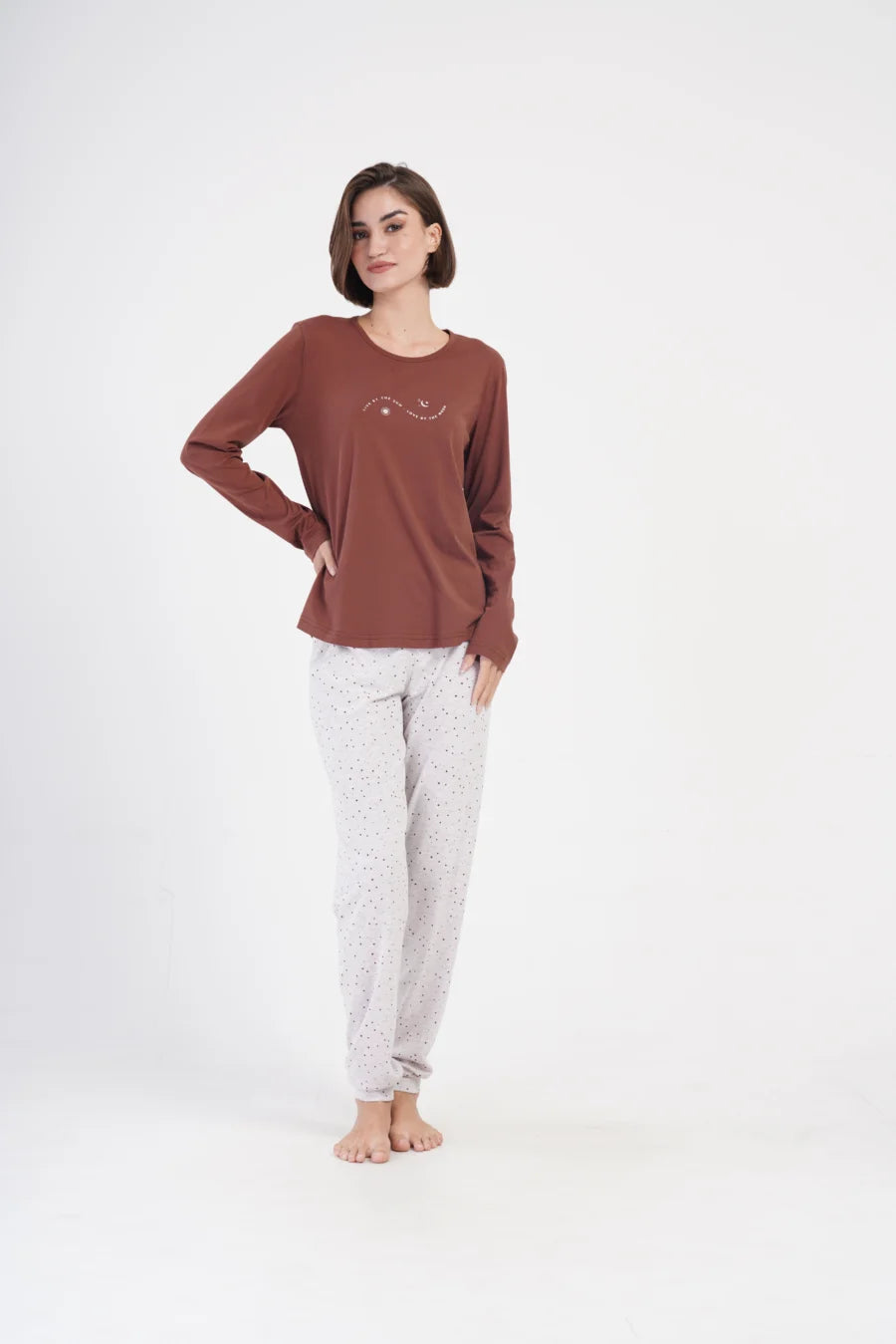 Piżama Damska Vienetta Sun and Moon, Brązowy, r. M-XXL