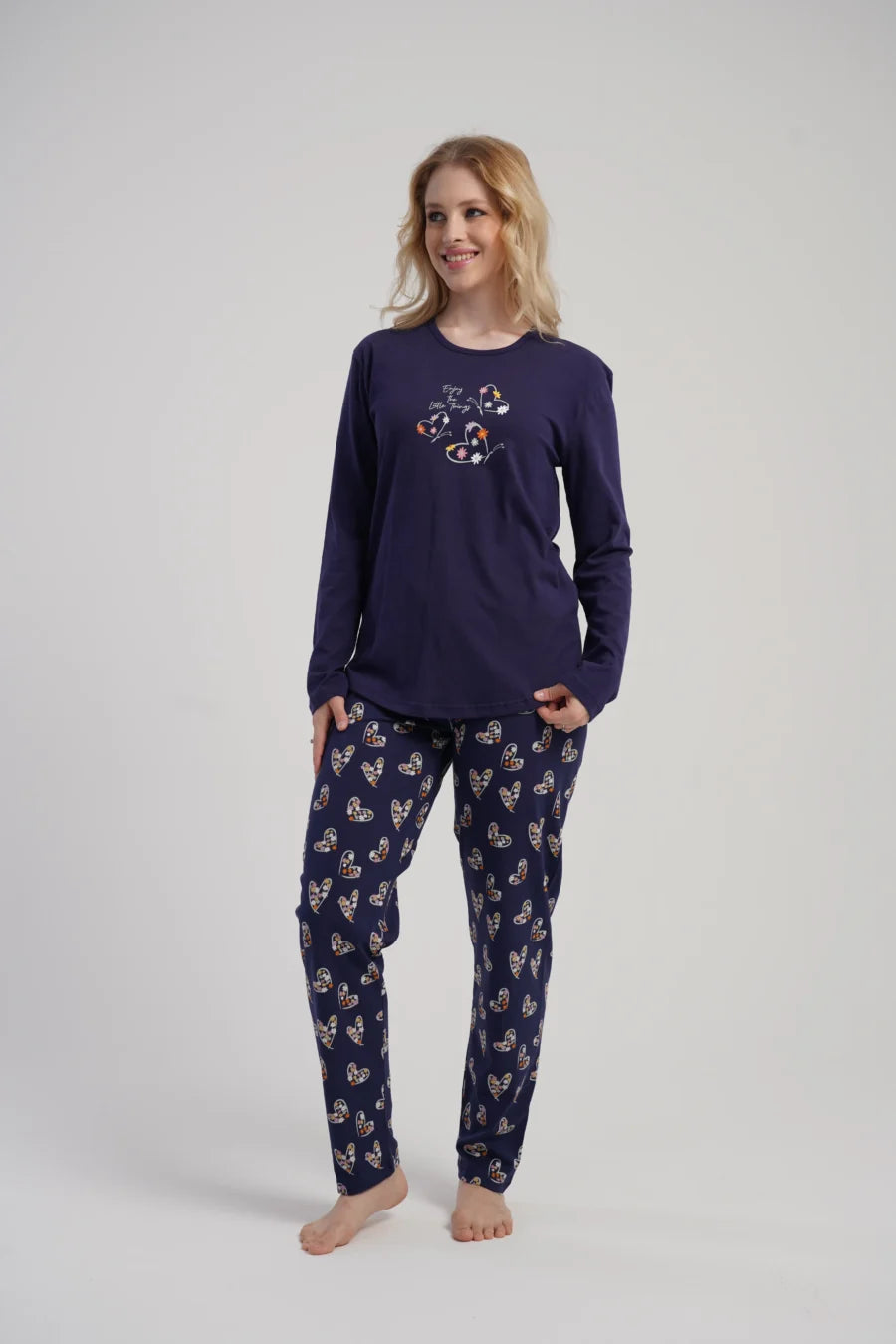 Zimowe noce wymagają wyjątkowego otulenia i komfortu – dlatego doskonałym wyborem będzie piżama damska Vienetta z bawełny. To klasyczny komplet złożony z bluzki z długim rękawem oraz spodni w tym samym odcieniu, ozdobionych uroczym motywem serc.