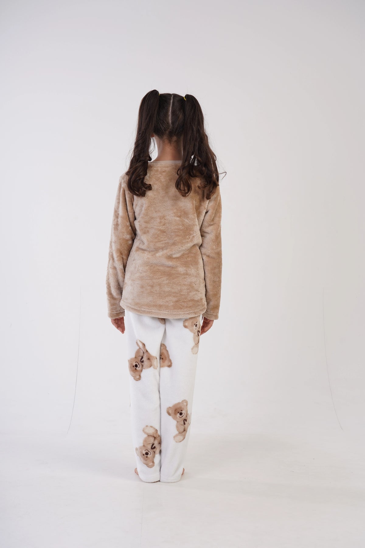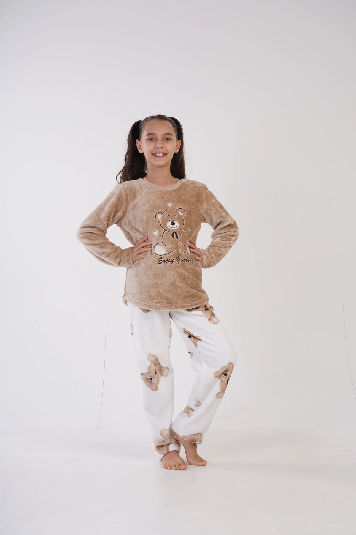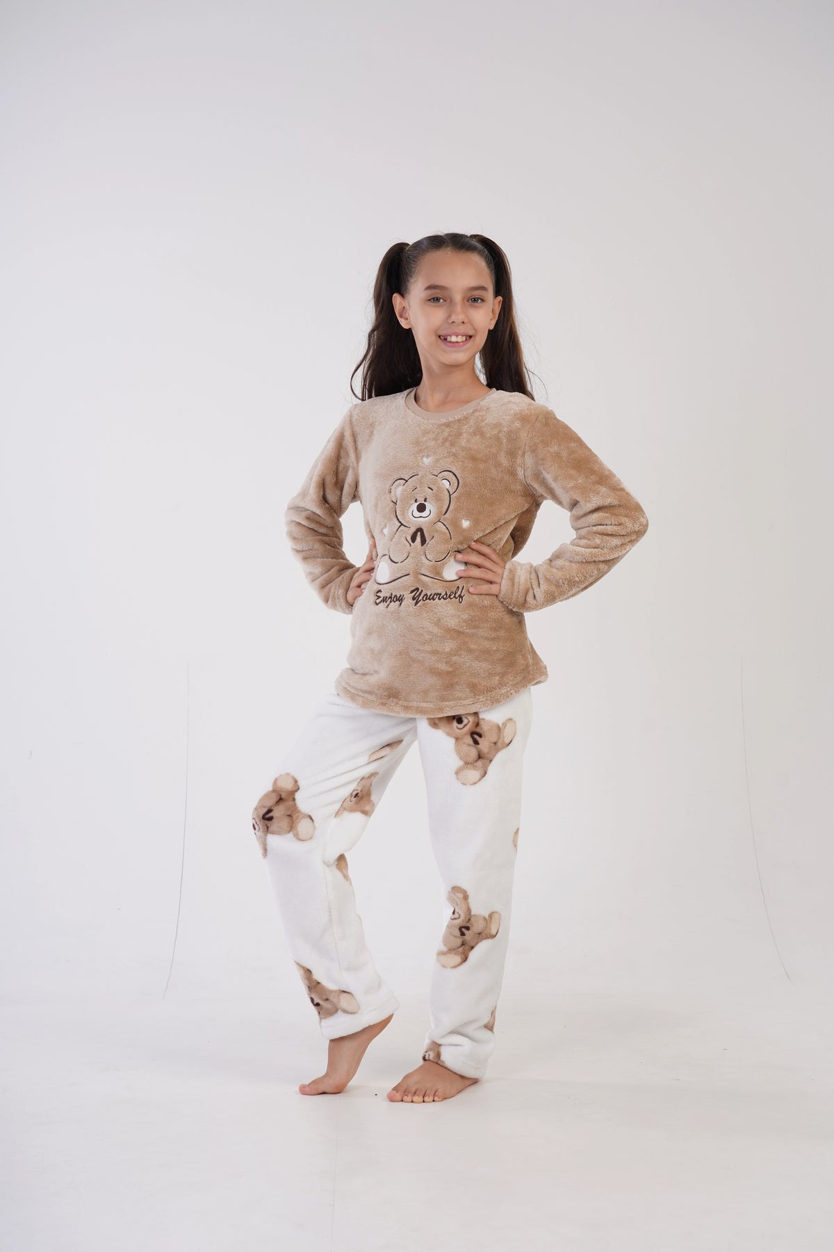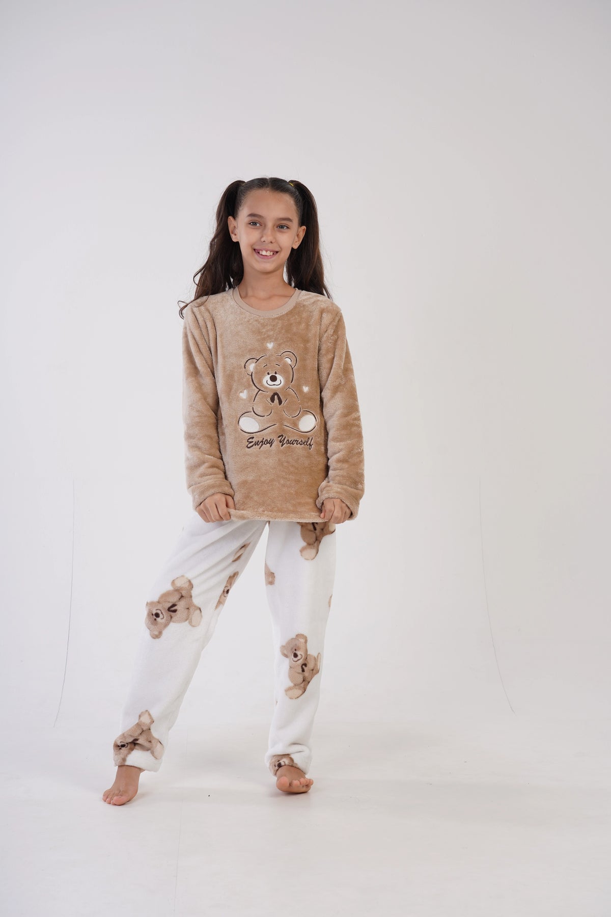 Piżama dziewczęca Vienetta Enjoy Teddy Bear, beżowo-biała, r. 134-164