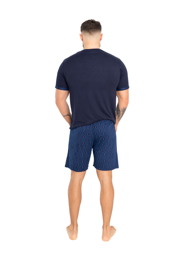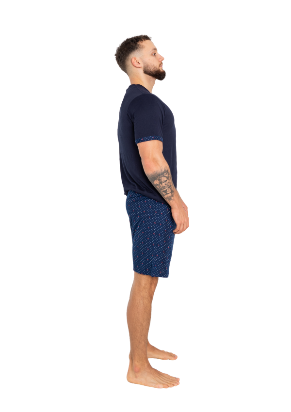 Koszulka z krótkim rękawem i praktyczną kieszonką na piersi została wykończona subtelnym wzorem, który doskonale komponuje się ze spodenkami. Krótkie spodnie z elastyczną talią i drobnym, kontrastowym nadrukiem gwarantują wygodę i swobodę ruchów.