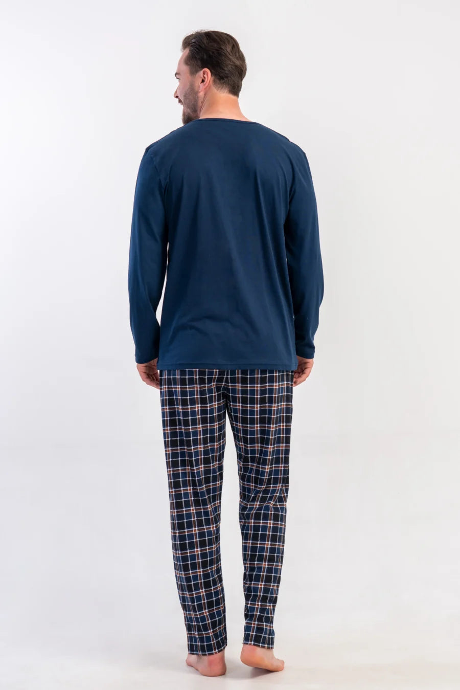 Wykonana w 100% z bawełny, piżama jest miękka, oddychająca i przyjemna dla skóry. Luźny krój zapewnia swobodę ruchów, dzięki czemu sprawdzi się zarówno podczas snu, jak i w domowym wypoczynku. To idealny wybór na każdą porę roku dla mężczyzn ceniących komfort i klasyczny wygląd.
