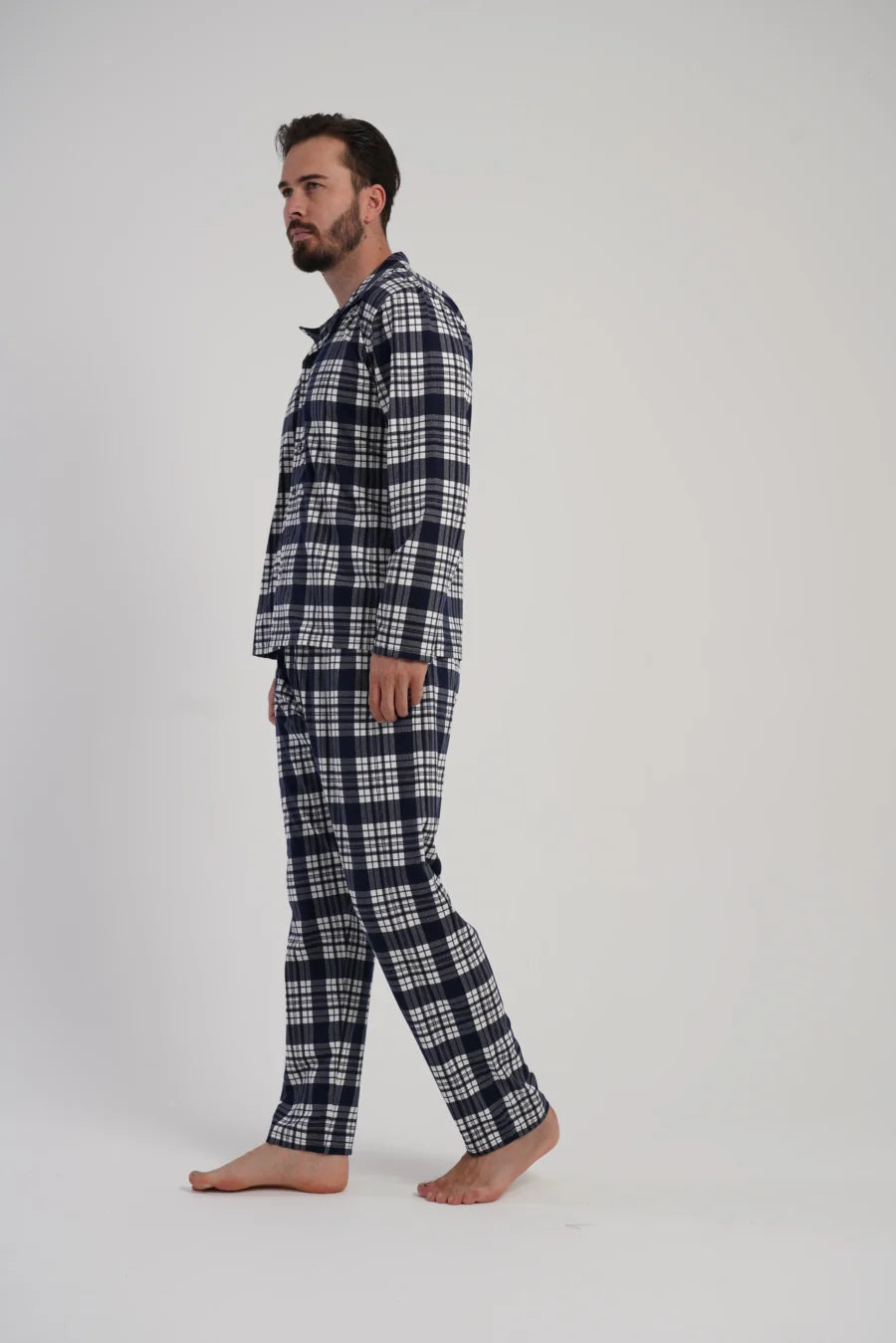 Dzięki swojemu klasycznemu designowi ta piżama męska w kratę świetnie sprawdzi się nie tylko do snu, ale również jako wygodny strój do domowego relaksu. Starannie dobrane kolory nadają jej ponadczasowy charakter.