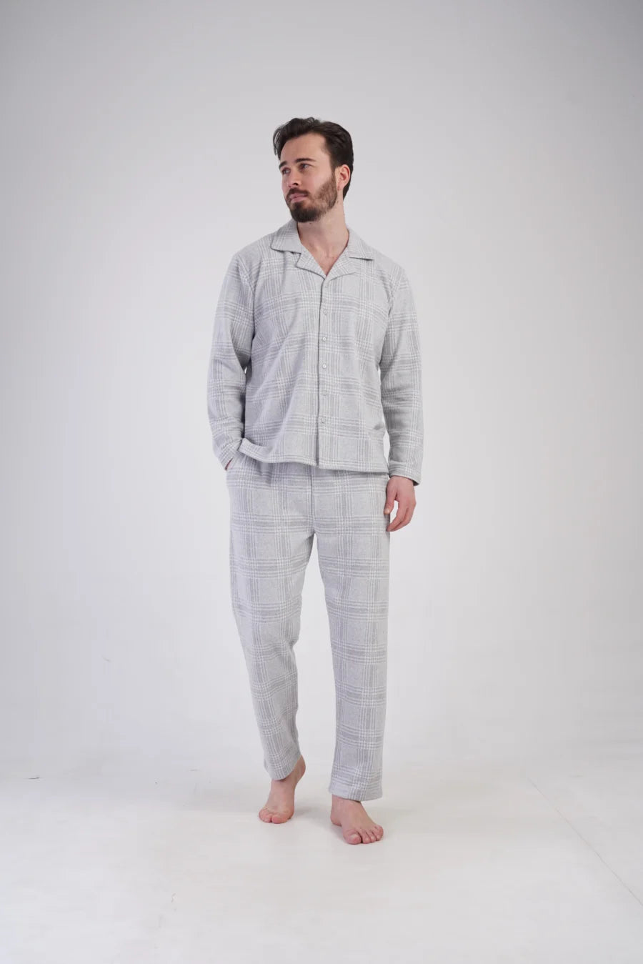 Całość utrzymana jest w stylowym jasnoszarym kolorze z delikatnym wzorem w kratę – ponadczasowy motyw, który nigdy nie wychodzi z mody. Wykonana z miękkiej, przyjemnej w dotyku dzianiny interlock (z dodatkiem elastanu), piżama świetnie dopasowuje się do sylwetki, zapewniając komfort termiczny i wygodę na co dzień.