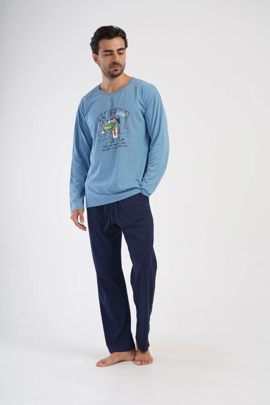 Piżama Męska Vienetta Lucky, Niebieski, r. 1XL-3XL