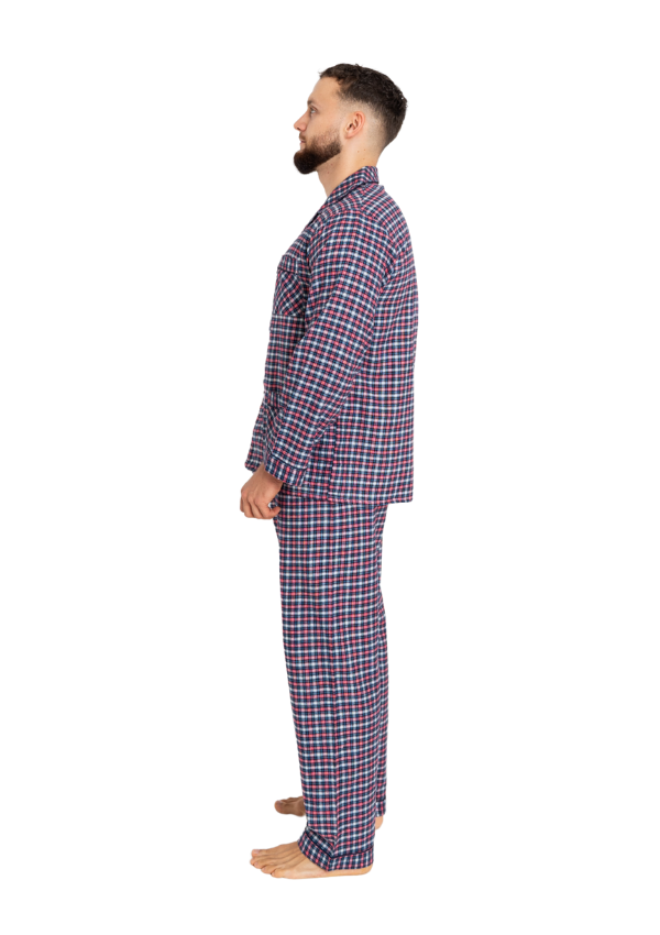 Piżama dostępna jest w różnych wariantach kolorystycznych i wzorach w kratę, utrzymanych w klasycznym stylu.
