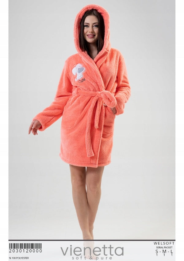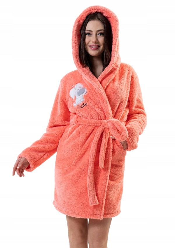 Szlafrok damski Vienetta, Cute Dog, Pomarańczowy, r. S-L
