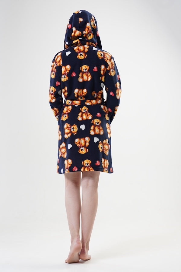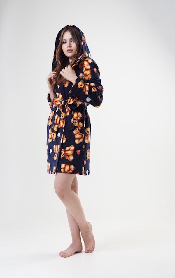 Szlafrok polecany dla kobiet i dziewcząt . Idealnie dopasowuje się do sylwetki dzięki wiązaniu na zakładkę ukrywa wszelkie niedoskonałości. Materiał z którego został wykonany jest delikatny i nie podrażnia skóry. Jego uniwersalny i elegancki wzór przypadnie do gustu każdej kobiecie. Idealnie nadaje się na okres jesienno-zimowy. Bardzo wygodny i komfortowy w użytkowaniu.