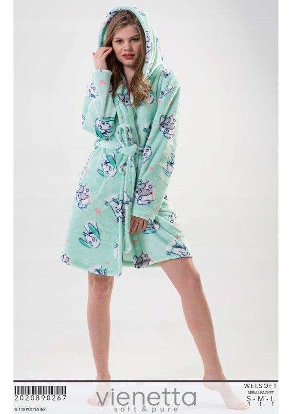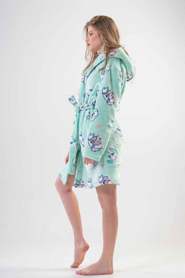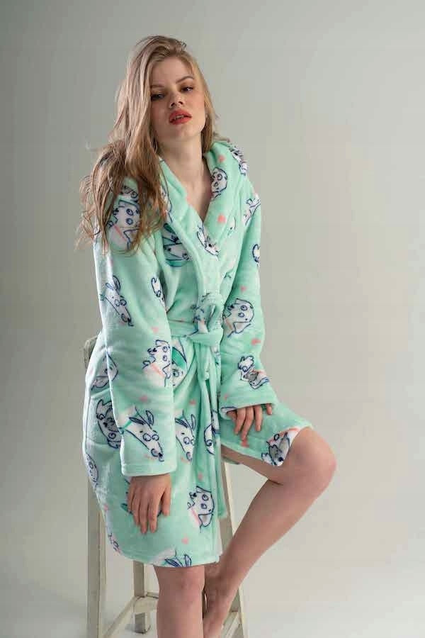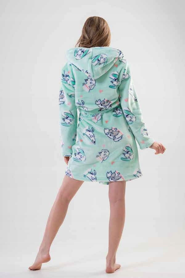 Szlafrok polecany dla kobiet i dziewcząt . Idealnie dopasowuje się do sylwetki dzięki wiązaniu na zakładkę ukrywa wszelkie niedoskonałości. Materiał z którego został wykonany jest delikatny i nie podrażnia skóry. Jego uniwersalny i elegancki wzór przypadnie do gustu każdej kobiecie. Idealnie nadaje się na okres jesienno-zimowy. Bardzo wygodny i komfortowy w użytkowaniu.