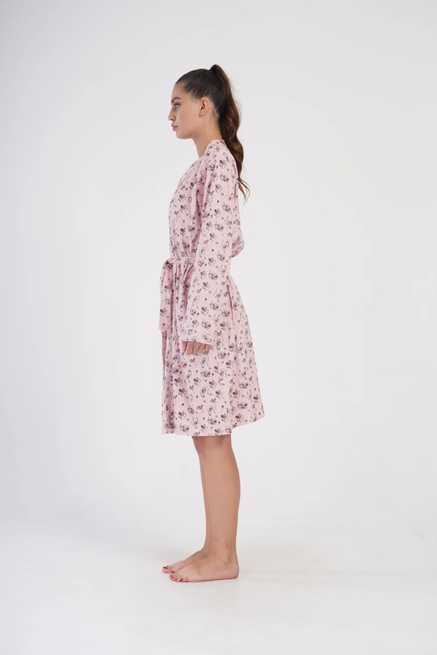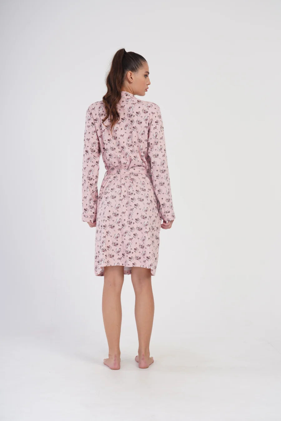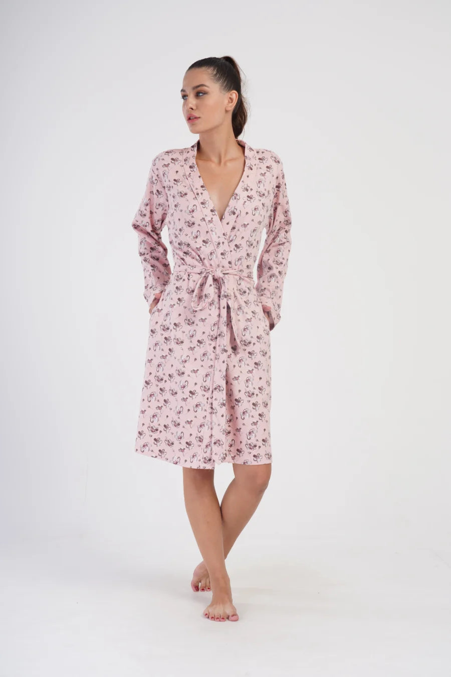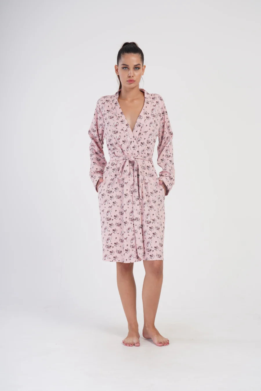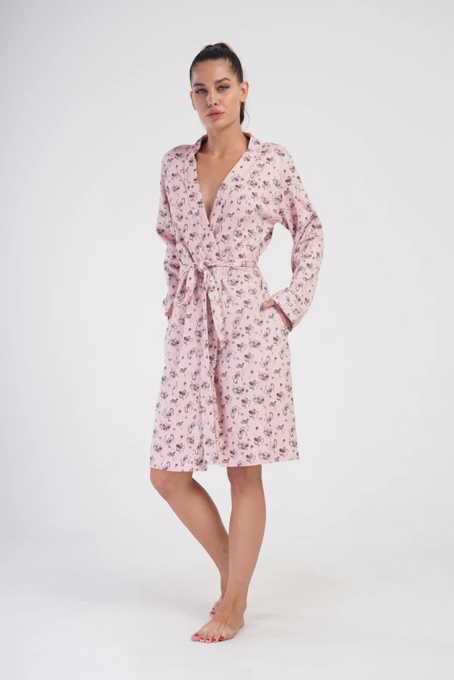 Szlafrok damski Interlock Pink Garden, Różowy, r. S-XL