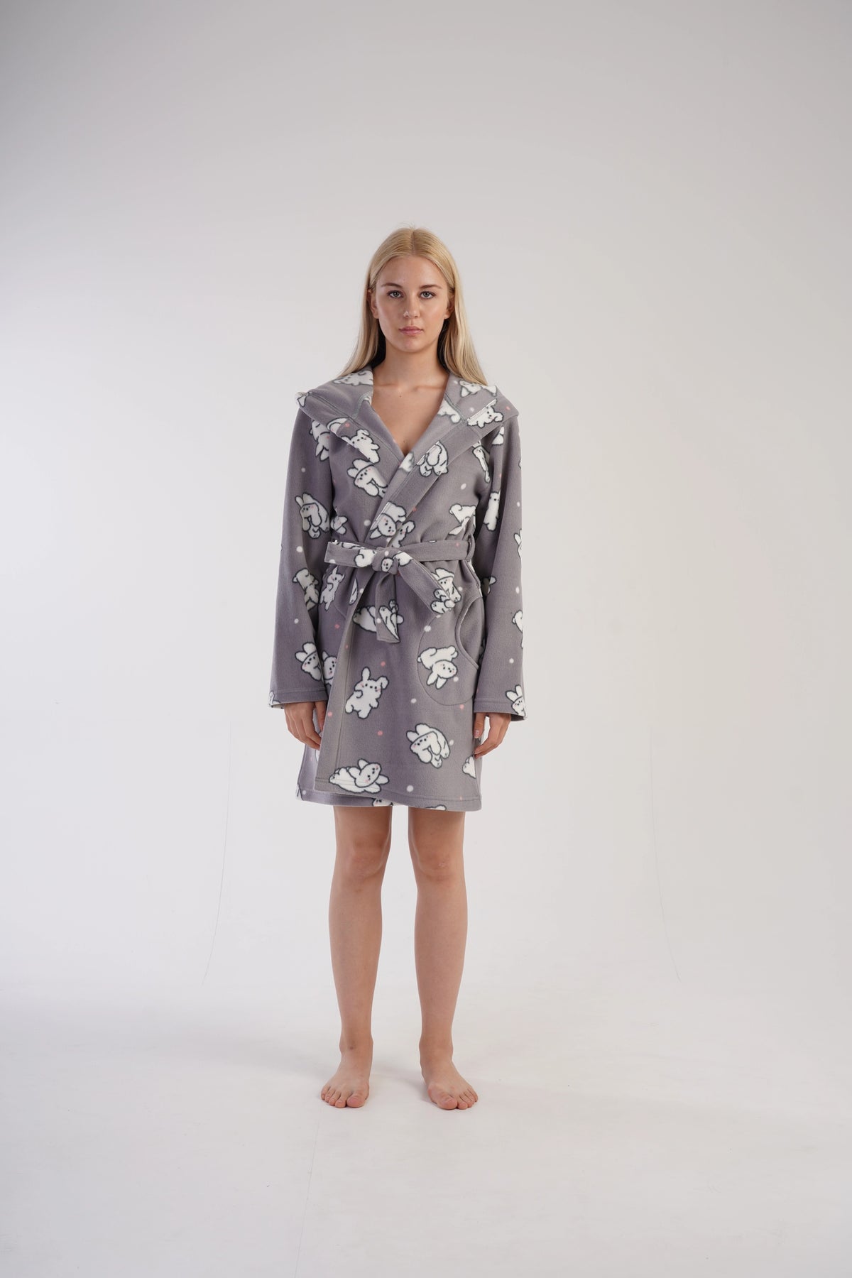 Szlafrok damski polarowy Vienetta Cozy Cuddle, szary, r. S-XL