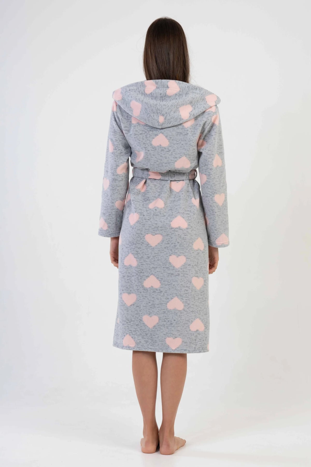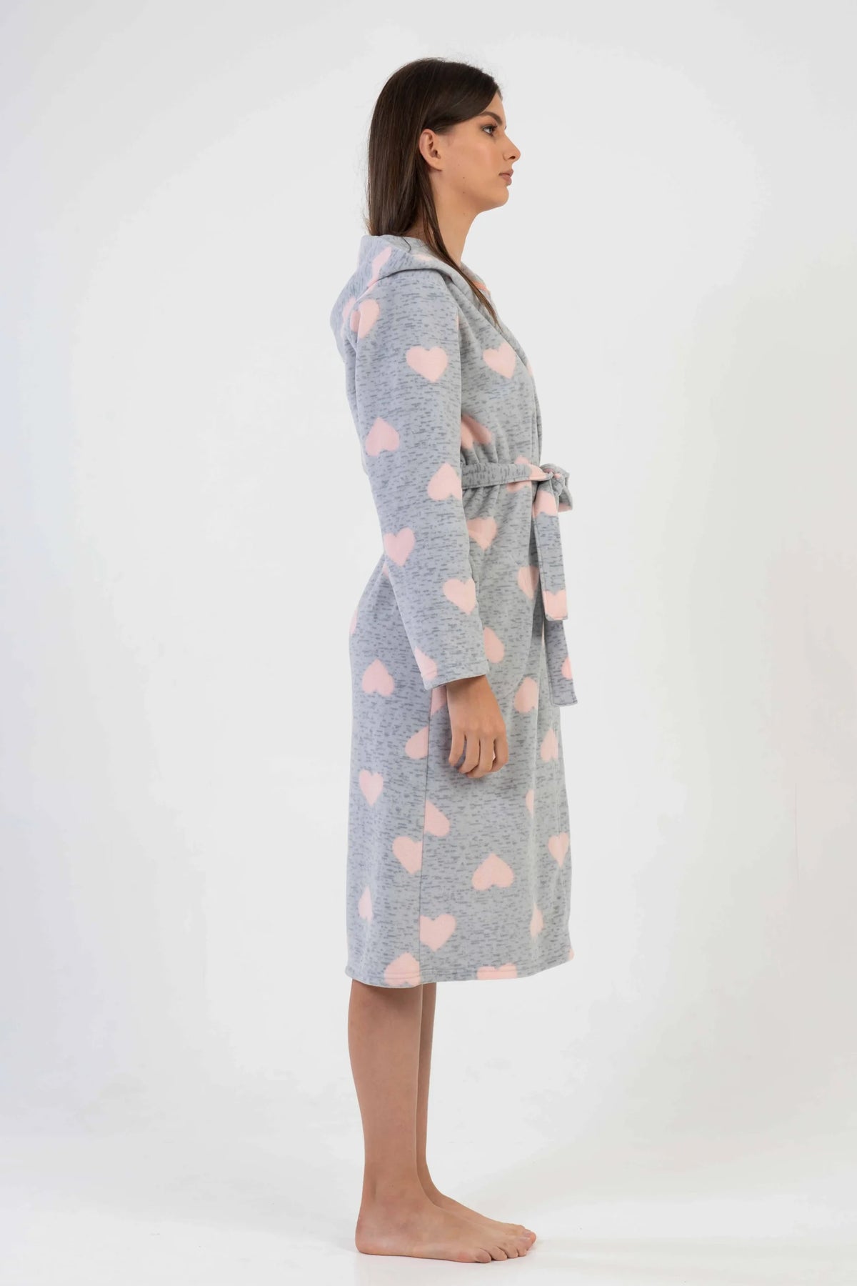 Szlafrok damski polarowy Vienetta, Hearts Comfort, Szary, r. S-XL