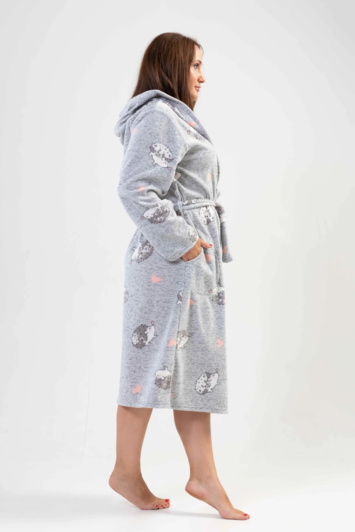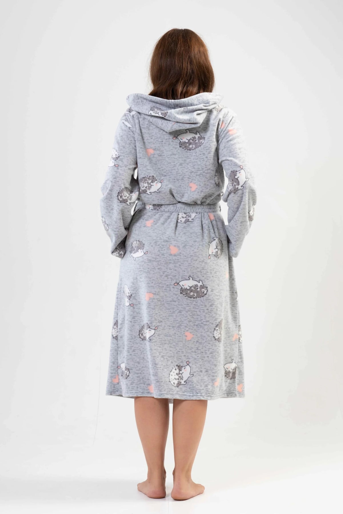 Szlafrok damski polarowy Vienetta Hedgehog, Szary, r. 1XL-4XL
