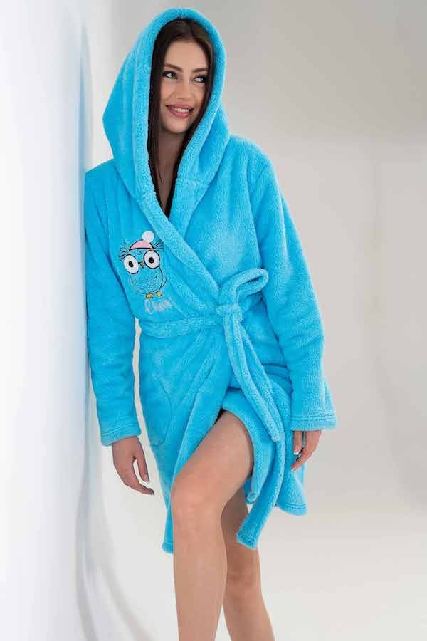 Szlafrok damski Vienetta, Blue Bird, Niebieska, r. S-L