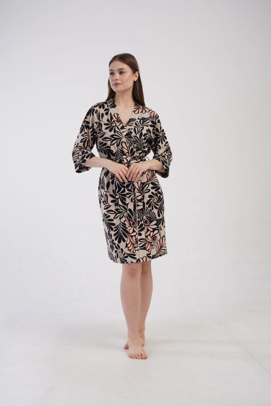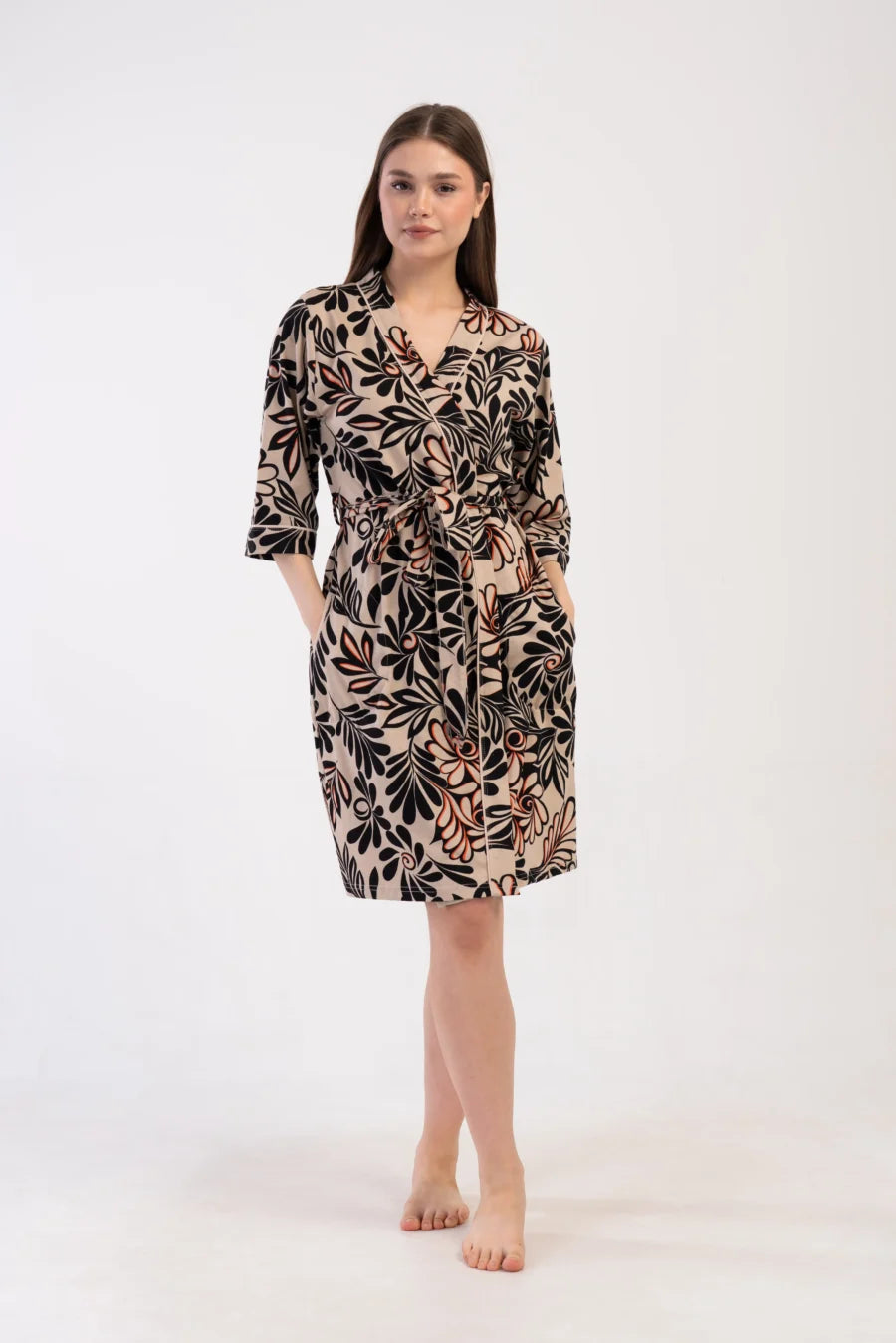 Szlafrok damski Vienetta Botanic Touch, Beżowy, r. 1XL - 4XL