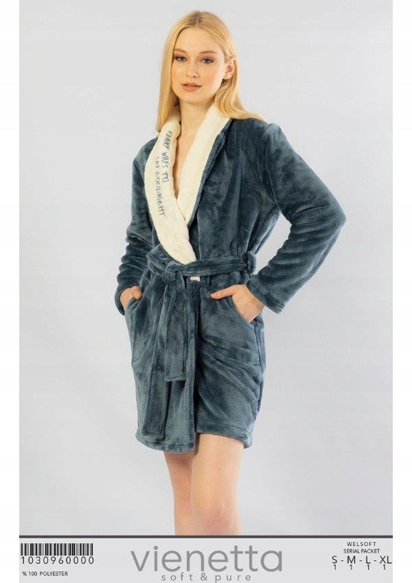 KOLOR: Jeansowy z wykończeniem w kolorze ecru SKŁAD MATERIAŁU: 100% Poliester PRODUCENT: Vienetta (1030960000) Szlafrok pluszowy gruby wiązany Jest przyjemny i miły w dotyku Posiada dwie kieszonki. Bardzo wygodny i komfortowy w użytkowaniu. Szlafrok to idealne uzupełnienie piżamy lub koszuli nocnej - możesz je znaleźć na innych naszych aukcjach idealnie sprawdzi się w chłodniejsze jesienno-zimowe wieczory Otul się nim po kąpieli i poczuj jak rozgrzewa Twoje ciało! Dzięki swemu estetycznemu opakowaniu idealnie nada się na prezent dla bliskiej Ci osoby SZUKASZ INNEGO ROZMIARU LUB WZORU? SPRAWDŹ POZOSTAŁE NASZE AUKCJE! Szlafrok polecany dla kobiet i dziewcząt . Idealnie dopasowuje się do sylwetki dzięki wiązaniu na zakładkę ukrywa wszelkie niedoskonałości. Materiał z którego został wykonany jest delikatny i nie podrażnia skóry. Jego uniwersalny i elegancki wzór przypadnie do gustu każdej kobiecie. Idealnie nadaje się na okres jesienno-zimowy. Bardzo wygodny i komfortowy w użytkowaniu. Firma została założona w 1991r od tej pory jesteśmy jedynym licenjonowanym przedstawicielem firmy Vienetta w Polsce. Oferujemy piżamy, szlafroki oraz koszule nocne produkowane w Turcji, powstają one z dbałością o najmniejsze szczegóły z najwyższej jakości materiałów i zgodnie z. aktualnymi trendami.