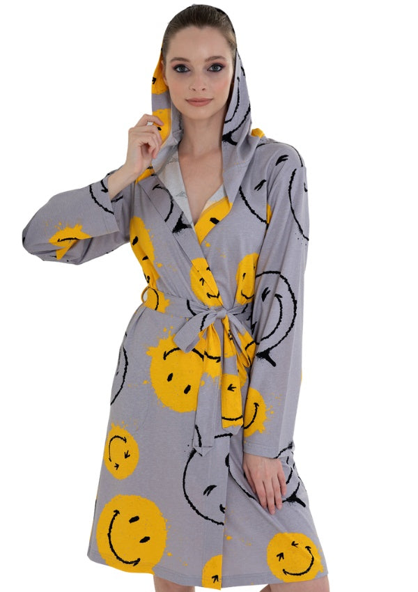 Szlafrok damski Vienetta Laughing Face, szary, r. S-XL