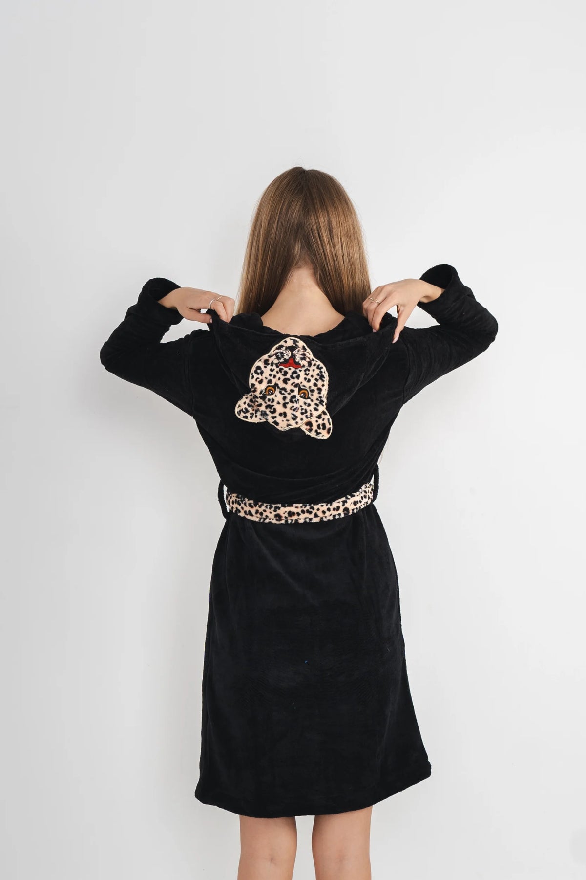 KOLOR: Czarny z panterkąSKŁAD MATERIAŁU: 100% Poliester/WELLSOFTPRODUCENT: Angel's Secret (16032)RĘKAW SZLAFROKA: Długi