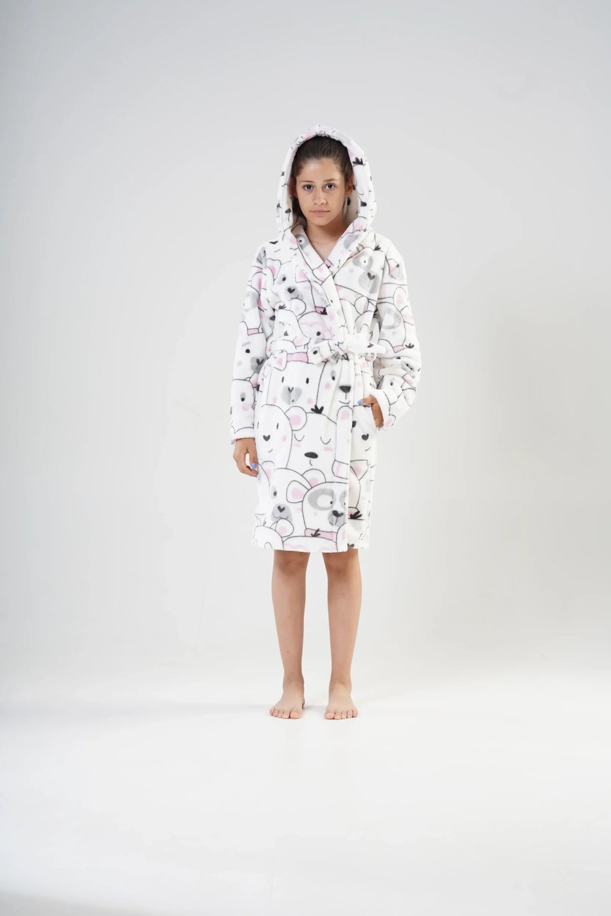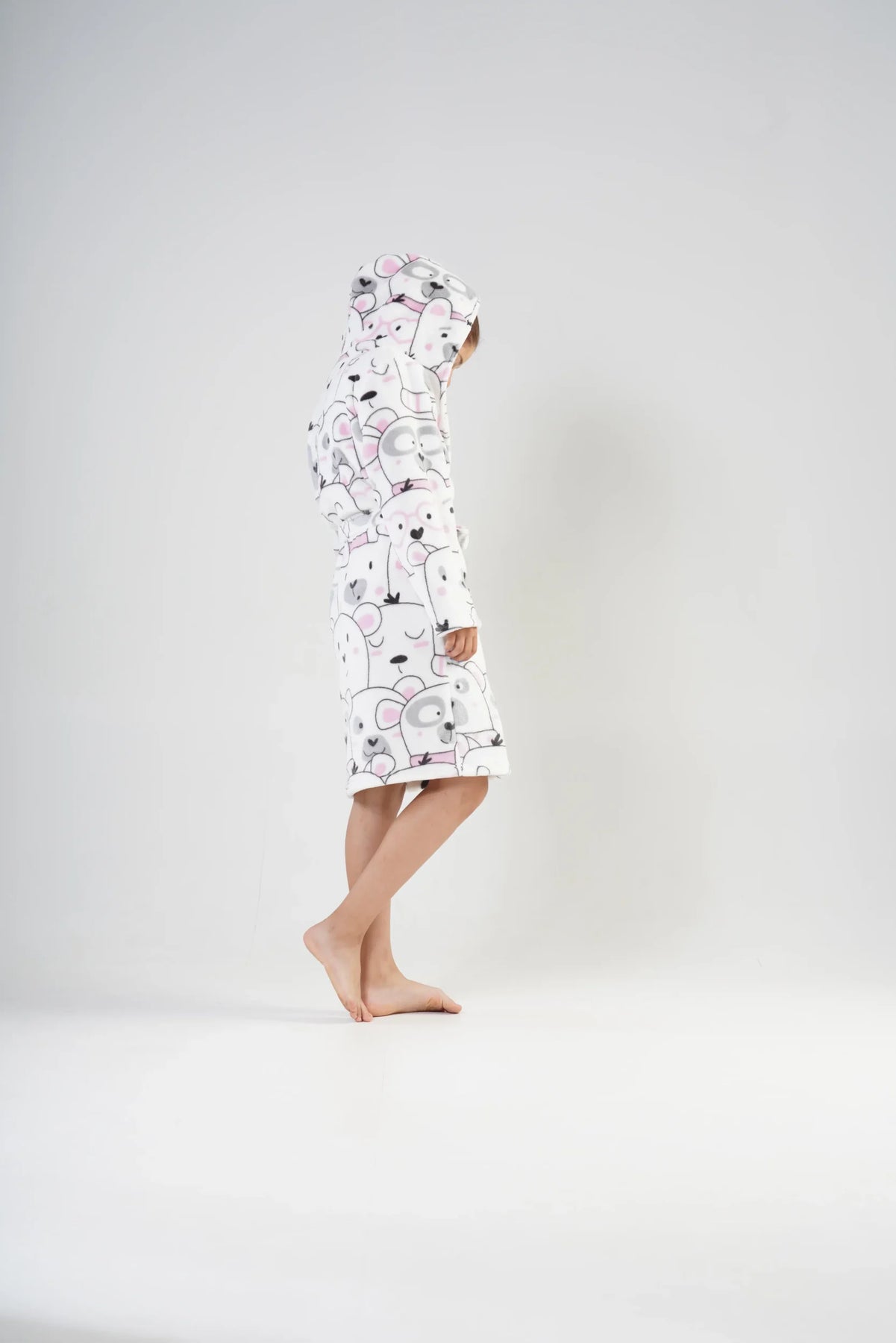Wesoły nadruk z uroczymi misiami na białym tle sprawia, że szlafrok zyskuje niepowtarzalny, dziecięcy charakter. To nie tylko praktyczne, ale i bardzo urokliwe okrycie po kąpieli – idealne również na prezent!