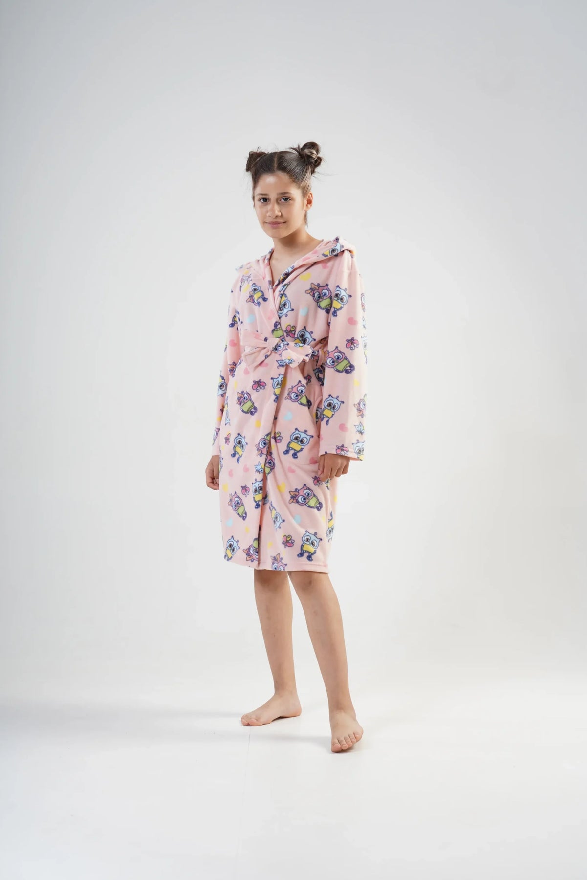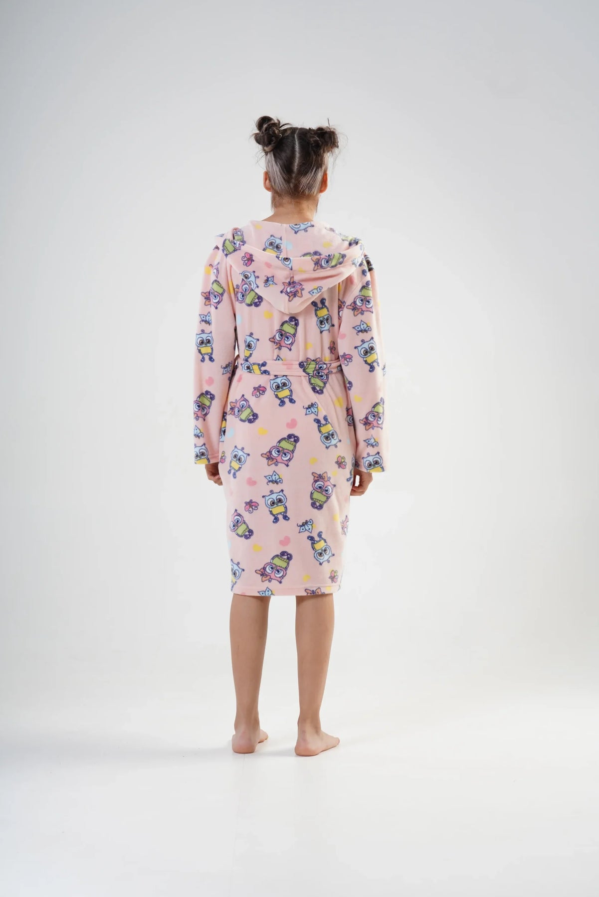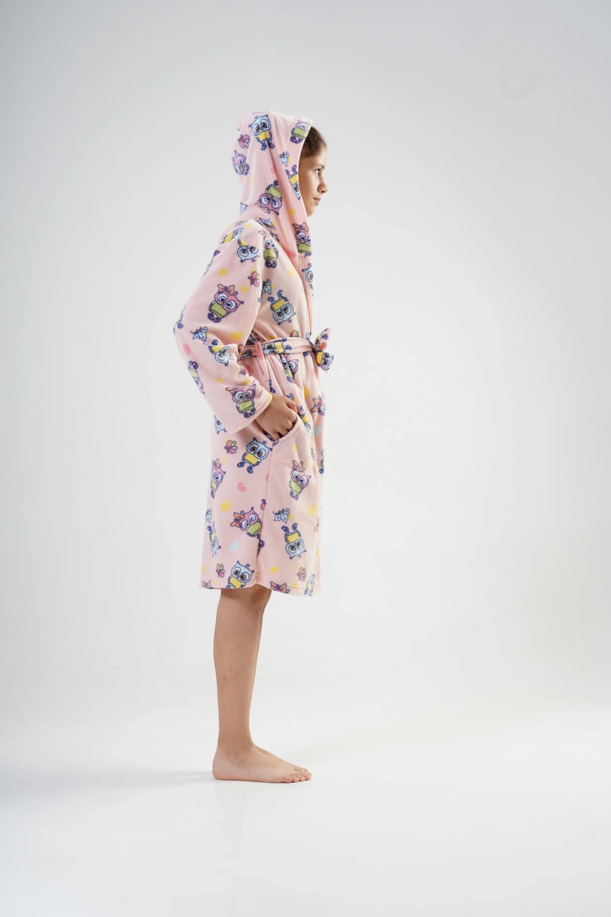 Wykonany z przyjemnego w dotyku polaru, nie tylko skutecznie ogrzeje, ale także zachwyci kolorowym, wesołym wzorem z motywem sów i serduszek. Kaptur, wiązanie w pasie i kieszenie czynią go praktycznym i bardzo wygodnym.