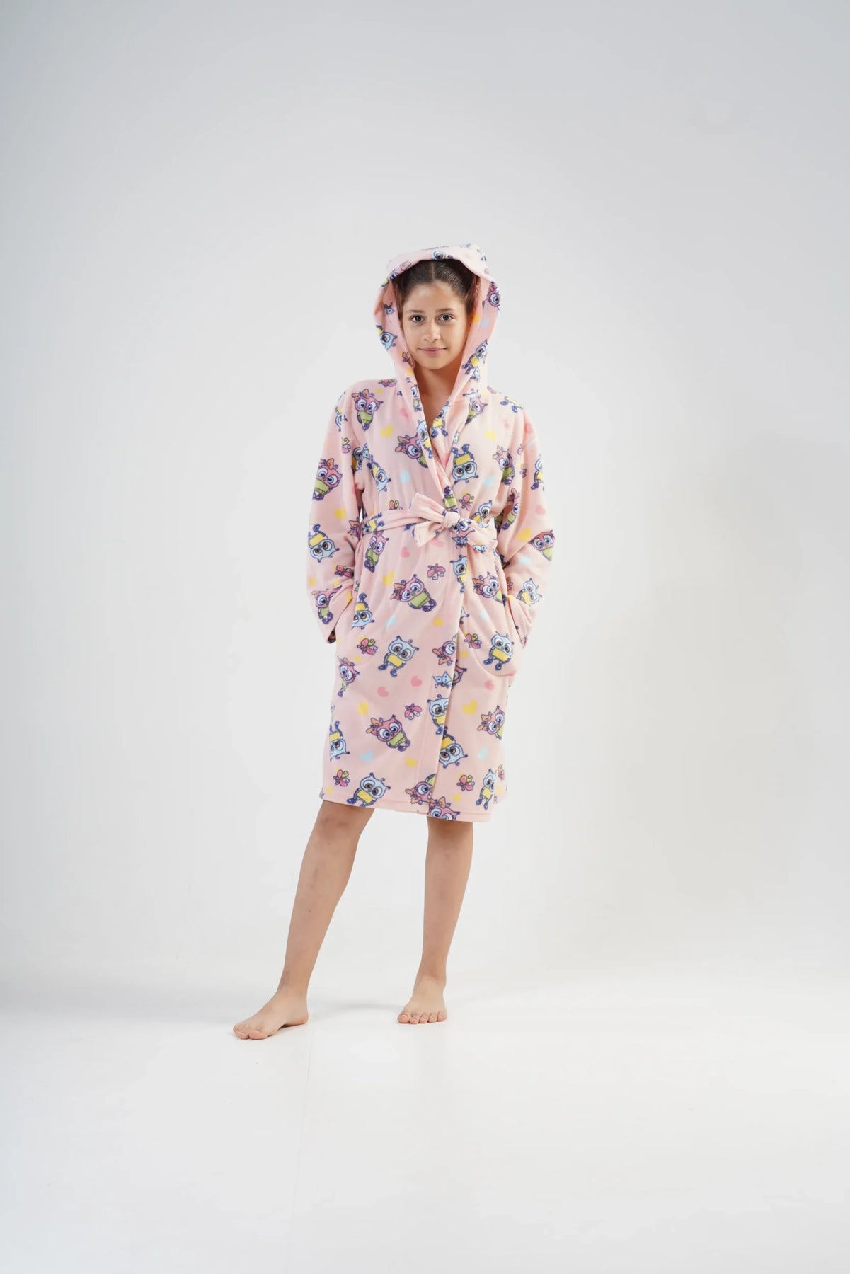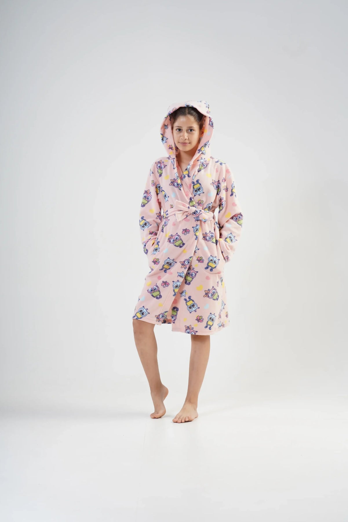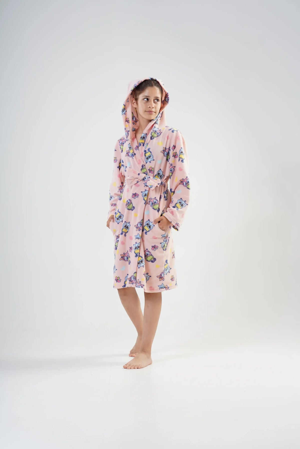 Wykonany z przyjemnego w dotyku polaru, nie tylko skutecznie ogrzeje, ale także zachwyci kolorowym, wesołym wzorem z motywem sów i serduszek. Kaptur, wiązanie w pasie i kieszenie czynią go praktycznym i bardzo wygodnym.