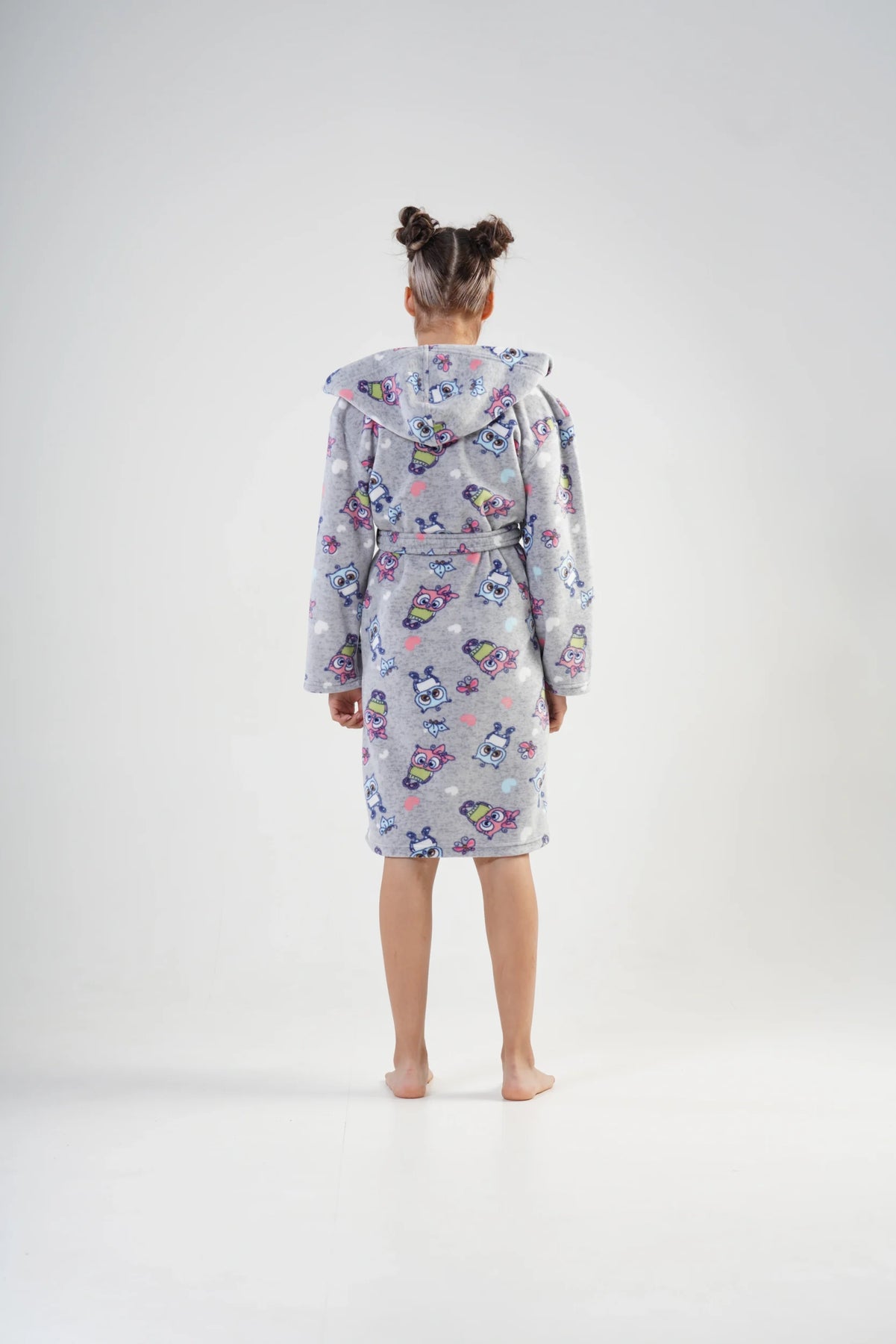 Wykonany z przyjemnego w dotyku polaru, nie tylko skutecznie ogrzeje, ale także zachwyci kolorowym, wesołym wzorem z motywem sów i serduszek. Kaptur, wiązanie w pasie i kieszenie czynią go praktycznym i bardzo wygodnym.