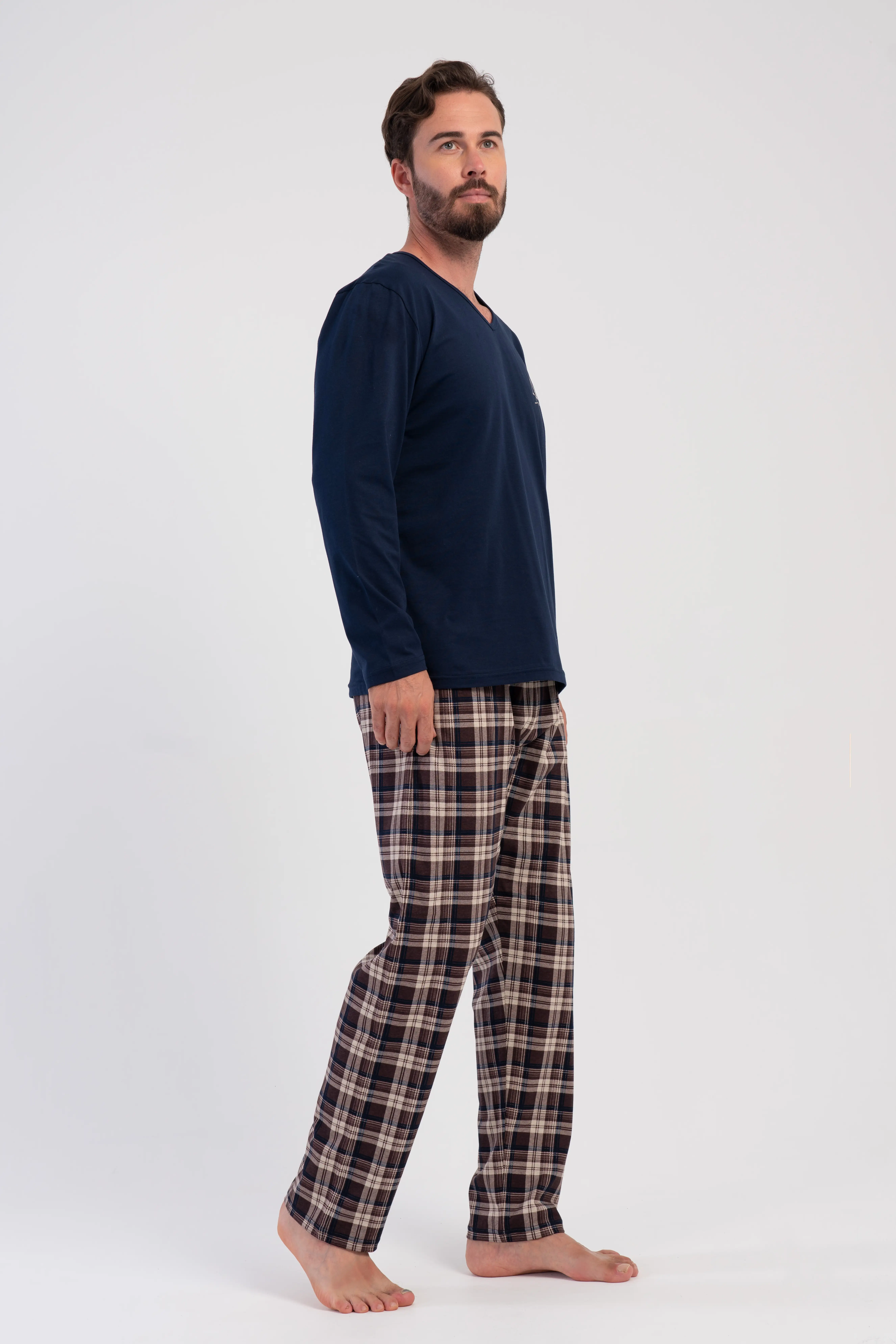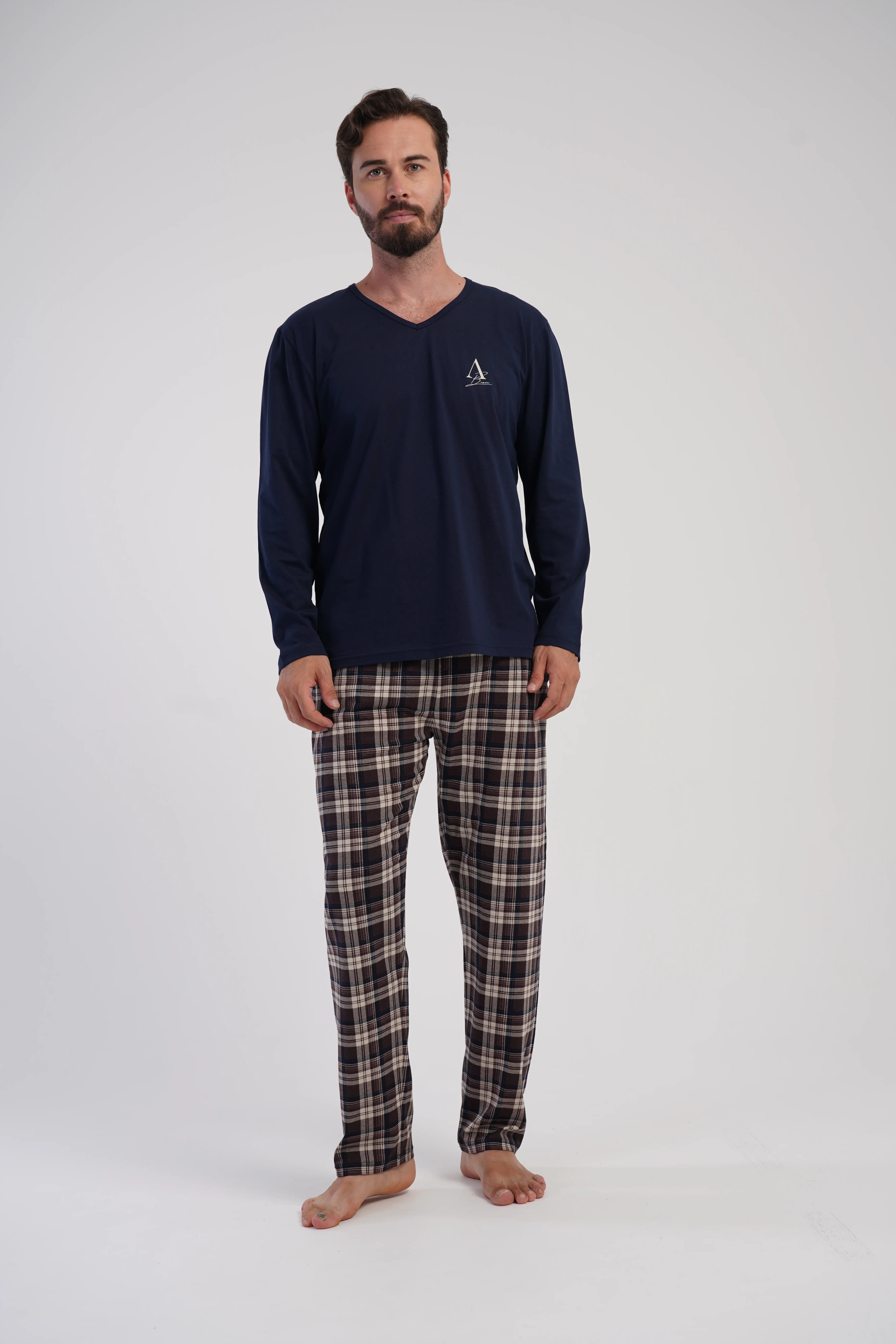 Piżama Męska Vienetta Navy Check, Granatowy, r. 1XL-4XL