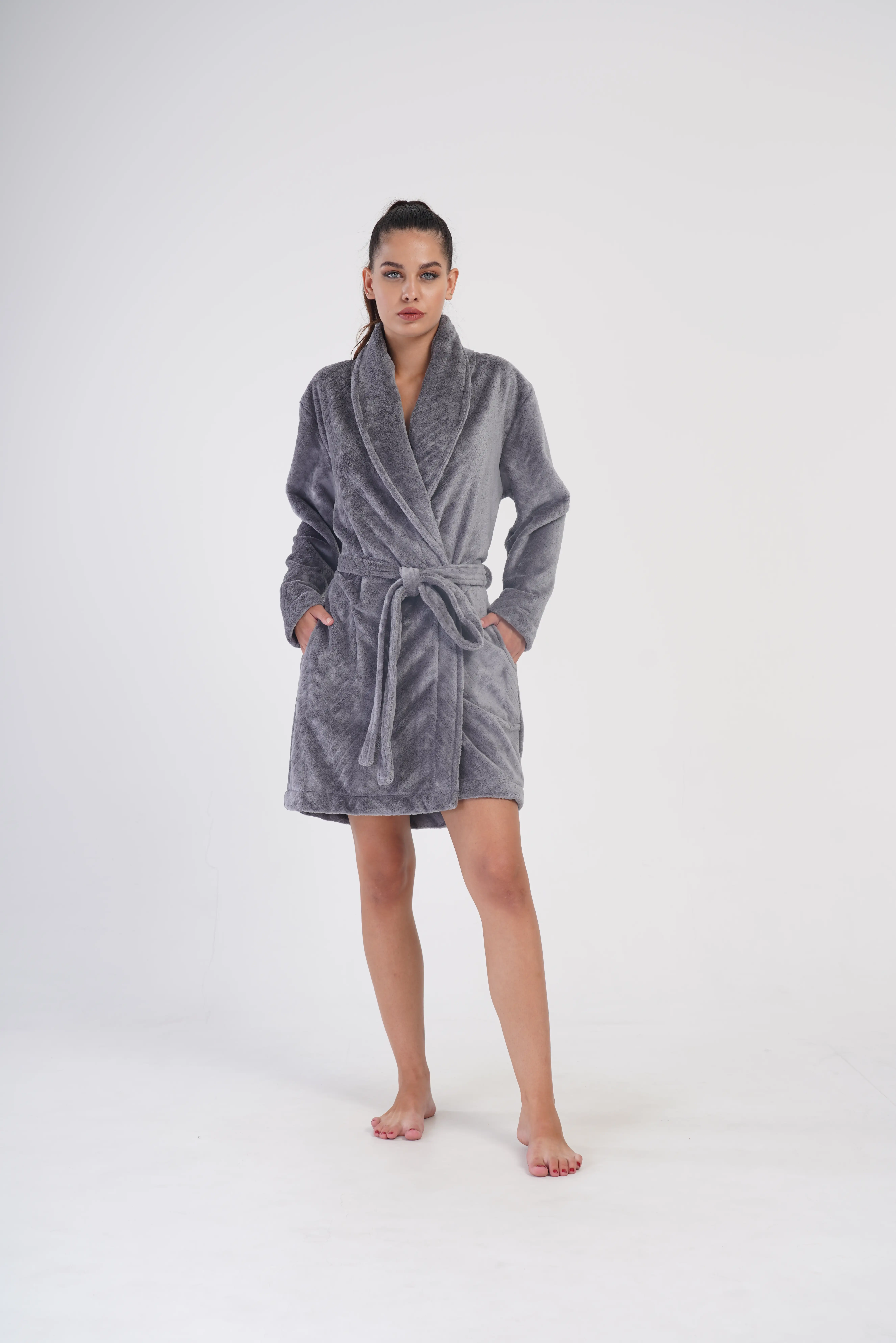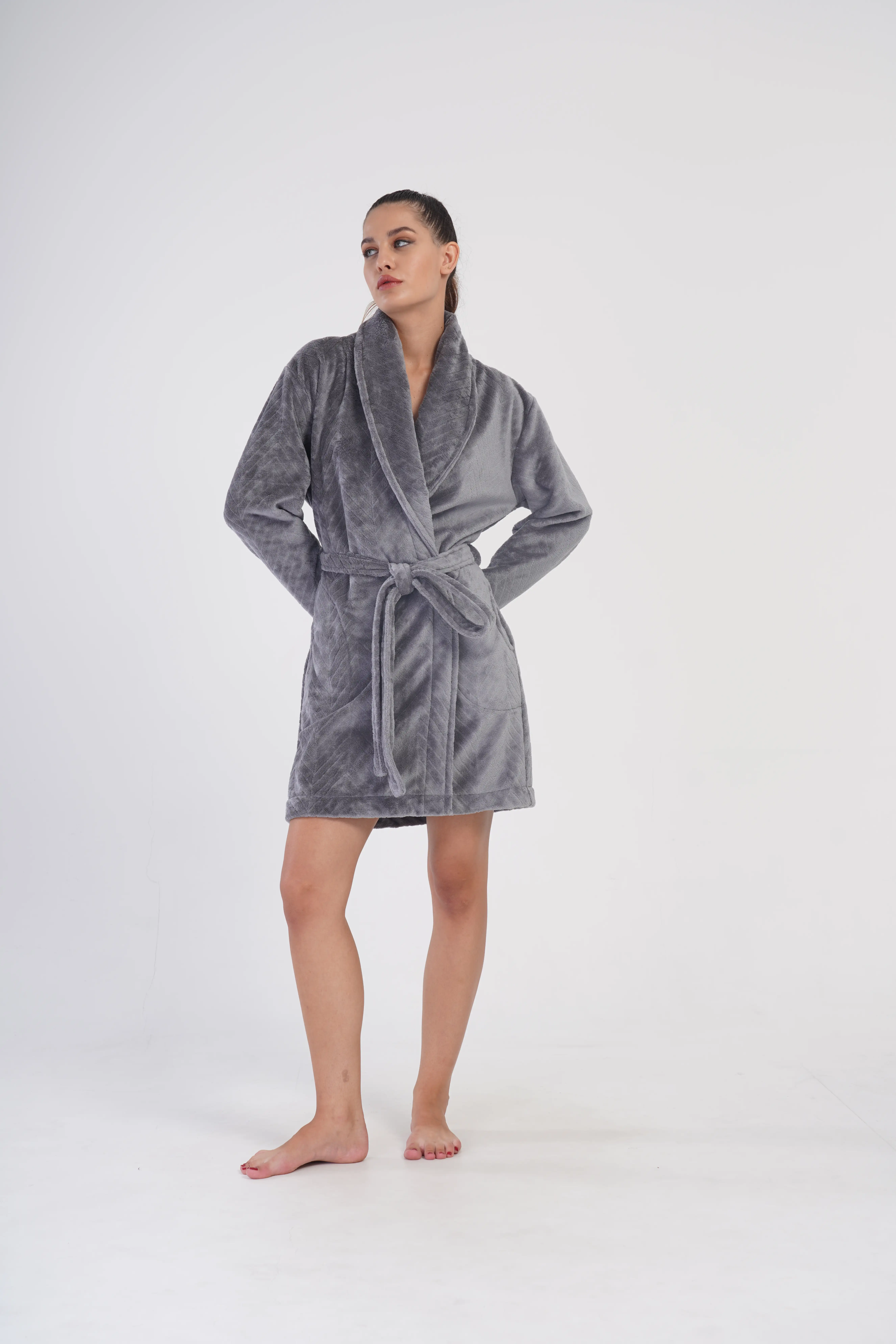Stylowy szlafrok damski z miękkiego materiału typu welsoft to idealny wybór na chłodne wieczory i poranki. Jego puszysta faktura zapewnia wyjątkowe ciepło i otulenie, a jednocześnie sprawia, że szlafrok wygląda elegancko i kobieco.